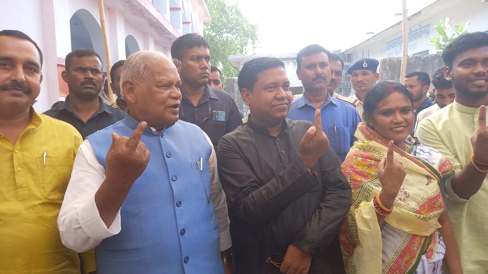 जीतनराम मांझी भी परिवार के साथ वोट डालने पहुंचे