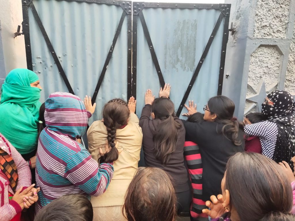 छात्रायें जब स्कूल पहुंचीं तो वह स्कूल के अंदर जाना चाह रही थीं लेकिन स्कूल का गेट अंदर से बंद था. इसके बाद छात्राओं ने गेट पीटना शुरू कर दिया. कुछ छात्रायें और अभिभावक गेट को फांद कर स्कूल में घुसने की कोशिश कर रहे थे. जब गेट नहीं खुला तो कुछ छात्रायें आक्रोशित हो गयीं. इसके बाद कुछ छात्राओं ने स्कूल गेट पर पत्थर चलाने शुरू कर दिये. इसके बाद हंगामा काफी बढ़ गया. छात्राओं और अभिभावकों को शांत करने के लिए पुलिस को क्यूआरटी की टीम बुलानी पड़ी.