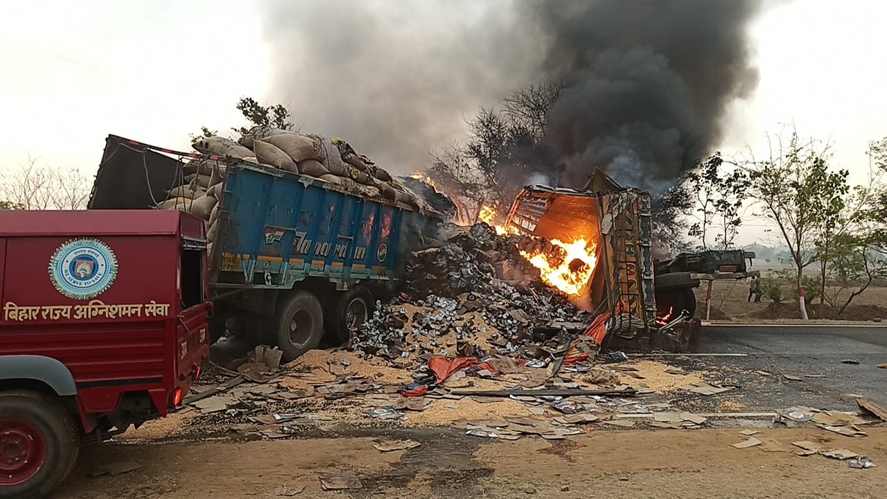 स्थानीय लोगों ने बताया कि घटना के वक्त तेज आवाज हुई और आग लग गयी. आग को देखकर कई लोग पानी लेकर दौड़े. मगर, आग पर काबू पाना संभव नहीं था. पुलिस ने बताया कि दूसरे ट्रक के चालक और उपचालक के बारे में भी जानकारी नहीं मिली है. पुलिस मौके पर पहुंचकर पूरे मामले की जांच पड़ताल कर रही है. दूसरे ट्रक के घायल उपचालक का भी बयान दर्ज किया जाएगा.