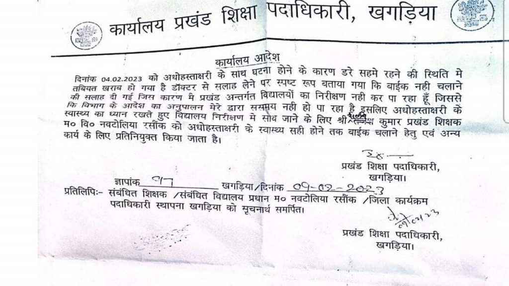 बिहार: ‘ये शिक्षक मेरी बाइक चलाएंगे..’, अधिकारी ने अपना ड्राइवर बनाने का ऑर्डर किया जारी तो मचा घमासान