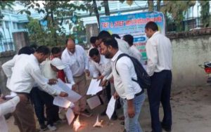 Bihar Teacher Transfer: टेट-एसटेट उत्तीर्ण नियोजित शिक्षक संघ के राज्य इकाई के आह्वान पर जिले में जबरन ट्रांसफर-पोस्टिंग प्रक्रिया पर रोक लगाने को लेकर शिक्षकों ने विरोध प्रर्दशन किया. सभी जिलो में सरकार ने सक्षमता उत्तीर्ण शिक्षकों को मेरिट वाइज जिला अलॉट कर जिले से बाहर पोस्टिंग करने का आदेश जारी किया है. शिक्षकों ने कहा कि इतने निम्न वेतन और असुरक्षित भविष्य जहां वेतन, छुटी एवं अन्य लाभ सुनिश्चित नहीं है कि स्थिति में ट्रांसफर-पोस्टिंग जबरन जिले से बाहर की जा रही है. यह शिक्षकों के साथ धोखा देकर मानसिक पीड़ा देने के बराबर है. संघ के साथ जिले के सभी सक्षमता उत्तीर्ण शिक्षकों ने सरकार के आदेश के जबरन ट्रांसफर-पोस्टिंग वाला पत्र का प्रति जलाकर विरोध प्रदर्शन किया गया.