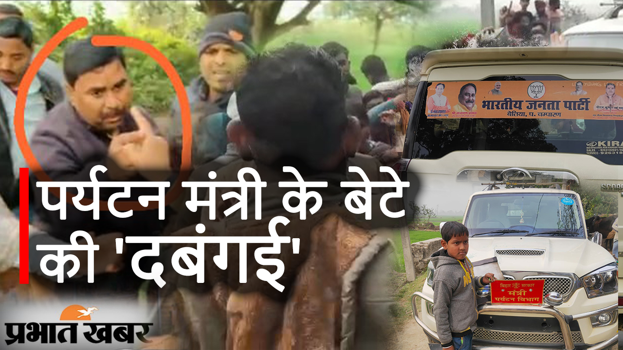नौतन विधायक सह राज्य के पर्यटन मंत्री नारायण प्रसाद साह के पुत्र ने रविवार को बेतिया में अपने बगीचे में खेल रहे बच्चों की पिटाई की थी. झड़प के दौरान मंत्री पुत्र पर फायरिंग करने का भी आरोप है. जब गांव के लोगों को बच्चों की पिटाई का पता चला, तो उन्होंने मंत्री पुत्र को पकड़कर जमकर धुना. मंत्री पुत्र बबलू के साथ ही मंत्री का भतीजा भी था. लोगों ने उसे भी खदेड़ कर पकड़ लिया और उसकी भी जमकर पिटाई की. इस दौरान बने वीडियो में भगता हुआ गार्ड भी दिख रहा है. गांव के लोगों में मंत्री पुत्र को लेकर आक्रोश है.