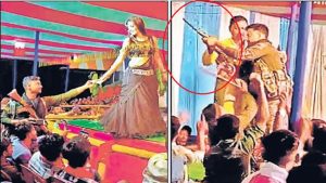 चली शामियाना में तोहरा चलते गोली… गीत पर दो बार बालाओं ने नृत्य शुरू किया तो वहां तैनात बरियारपुर थाना का कांस्टेबल राजेश कुमार बेकाबू हो गया. हर ठुमके पर वह स्टेज के नीचे से बार बालाओं को पर्स से रुपये निकाल कर देने लगा.