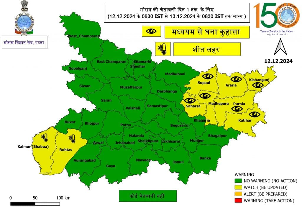 मौसम वैज्ञानिकों का कहना है कि बिहार में उत्तर-पश्चिमी सर्द हवाओं का असर देखने को मिल रहा है. अगले पांच दिनों तक मौसम शुष्क बना रहेगा. सुबह और शाम के समय पूरे राज्य में कोहरा छाया रहेगा. हालांकि, अधिकतर जगहों पर न्यूनतम तापमान में विशेष बदलाव होने की संभावना नहीं है.