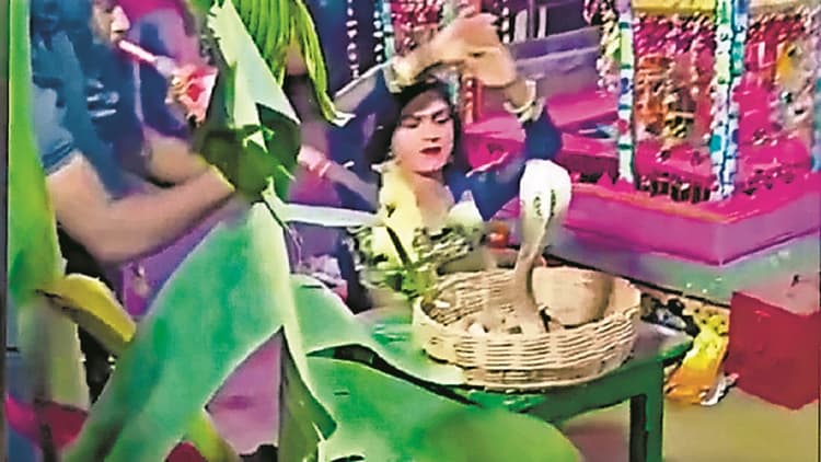 उन्हीं में से एक युवक ने भगवान शंकर का रूप धरा था. आयोजकों ने एक सपेरे को सांप के साथ भी बुलाया था. उस सपेरे ने शंकर बने युवक के गले में विषधर लपेट दिया. युवक भी अपनी धून में नाचता रहा. थोड़ी ही देर में सांप ने युवक को डंस लिया, जिससे वह वहीं अचेत हो गया. आयोजकों ने पहले झाड़-फूंक कराया. होश में नहीं आने पर उसे सीएचसी ले जाया गया. जहां इमरजेंसी में डॉ लाल बहादुर ने प्रारंभिक चिकित्सा कर तीन मिनट के अंदर रेफर कर दिया. साथ लाये लोग उसे लेकर चले भी गये, लेकिन थोड़ी ही देर बाद उसे फिर अस्पताल के बेड पर सुला फरार हो गये. डॉ लाल बहादूर ने उसे मृत पा तुरंत पुलिस को सूचना दी.