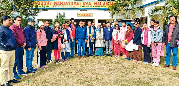 सिलाव. महाबोधि महाविद्यालय बीएड और डीएलएड, नालंदा में मंगलवार को मॉरीशस की सुप्रसिद्ध लेखिका और पूर्व उपप्रधानमंत्री की पत्नी डॉ सरिता बुद्धु का स्वागत किया गया. इस अवसर पर फिल्मकार, अभिनेत्री और मानवाधिकार टुडे के संपादक डॉ शशिभूषण कुमार भी शिष्टमंडल के रूप में उपस्थित थे. महाविद्यालय के प्राचार्य डॉ दीपक शर्मा ने अतिथियों का गुलदस्ता और अंगवस्त्र देकर स्वागत किया और दीप प्रज्वलन के साथ कार्यक्रम की शुरुआत हुई. डॉ शर्मा ने मॉरीशस और भारत के संबंधों, खासकर नालंदा से जुड़ाव और भारत की ज्ञान, सभ्यता और संस्कृति पर चर्चा की. डॉ सरिता बुद्धु ने प्रशिक्षुओं को संबोधित करते हुए अपने शैक्षिक जीवन के अनुभव साझा किये और कहा कि नालंदा ज्ञान और बुद्ध की भूमि है. उन्होंने प्रशिक्षुओं को अच्छे शिक्षक बनने के लिए गुरु मंत्र दिये और प्रेरित किया कि हमेशा खुश रहकर दूसरों के लिए काम करना शिक्षा का सही अर्थ है. उन्होंने यह भी बताया कि उनके पूर्वज बिहार से मॉरीशस गये थे. इस अवसर पर महाविद्यालय के स्टाफ और बीएड एवं डीएलएड के प्रशिक्षु उपस्थित थे, जिनमें डॉ अंजनी कुमार सुमन, डॉ मनोज कुमार सिंह, डॉ अमित कुमार, डॉ सीमा कुमारी, डॉ रवि आनंद, प्रो. धीरेन्द्र कुमार, प्रो. सूर्य प्रकाश रावत, प्रो. अमरजीत कुमार, प्रो. अनिल कुमार कश्यप और डॉ कुमार सुरेंद्र प्रताप शामिल थे. सभी ने डॉ सरिता बुद्धु का स्वागत किया और उनके विचारों को ध्यान से सुना.