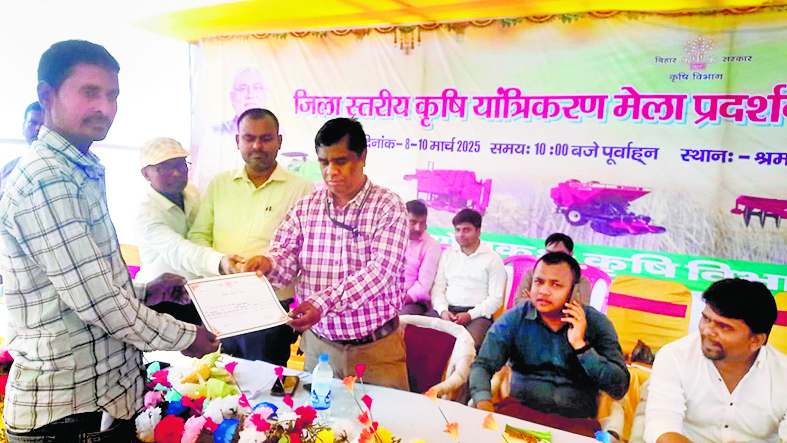 जिलास्तरीय कृषि यंत्रीकरण मेला सह किसान मेला के तीसरे एवं अंतिम दिन सोमवार को कृषि यंत्रों के महत्व पर चर्चा करते हुए नालंदा उद्यान महाविद्यालय के इंजीनियर मनीष कुमार एवं वीर बहादुर सिंह के द्वारा विस्तार पूर्वक चर्चा की गयी. आत्मा के परियोजना उप निदेशक सह विपणन पदाधिकारी अविनाश कुमार ने बताया कि जैविक कॉरिडोर नालंदा के कुल 21 किसानों द्वारा प्रदर्शित उनके उत्पाद के लिए उनको प्रशस्ति पत्र देकर सम्मानित किया गया. साथ ही कृषि यंत्र विक्रेता के उत्कृष्ट प्रदर्शन के आधार पर चार विक्रेताओं को भी प्रशस्ति पत्र से सम्मानित किया गया. जिला कृषि पदाधिकारी राजीव कुमार के द्वारा इस मेल में कमियों को दूर करने के लिए एवं आगे के आयोजन में उसको सुधार करने की प्रवृत्ति के साथ नवाचार प्रयोग करने की सलाह दी गयी. आत्मा के कृषक हित समूह के द्वारा लगाये गये प्रदर्शनी गंगा मधु, प्रज्ञा कृषक हित समूह एवं कतरीसराय की प्रगतिशील महिला कृषक के द्वारा मशरूम पकोड़ा के स्टॉल, जीविका के स्टॉल के लिए उनका विशेष रूप से धन्यवाद किया गया. इस तीन दिवसीय मेला में कुल 48 कृषकों के द्वारा 52 लाख रुपए अनुदान राशि के मूल्य के कृषि यंत्रों की खरीदारी की गयी. कार्यक्रम का समापन सहायक निदेशक कृषि अभियंत्रण अभिमन्यु कुमार के धन्यवाद ज्ञापन हुआ. समापन मौके पर सभी जिलास्तरीय सहायक निदेशकगण, अनुमंडल कृषि पदाधिकारी, सभी नवनियुक्त सहायक निदेशक, प्रखंड कृषि पदाधिकारी, सभी प्रखंडों से आये हुए प्रखंड कृषि पदाधिकारी कृषि समन्वयक, एटीम, बीटीएम, किसान सलाहकार एवं सम्मानित किसान बंधु उपस्थित रहें.डिस्क्लेमर: यह प्रभात खबर समाचार पत्र की ऑटोमेटेड न्यूज फीड है. इसे प्रभात खबर डॉट कॉम की टीम ने संपादित नहीं किया है