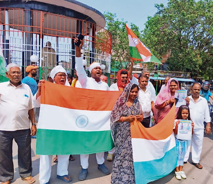 शेखपुरा. जिला कांग्रेस कमेटी के तत्वावधान में बड़ी संख्या में कांग्रेसियों ने आजाद हिंद आश्रम से जय हिंद तिरंगा यात्रा निकाल कर भारतीय सेनाओं के शौर्य के प्रति आभार जताने का काम किया. देशभक्ति भरे नारों का जयघोष करते हुए यात्रा की. सेना के आपरेशन सिंदूर के तहत पाकिस्तान में घुसकर आतंकी ठिकाने को नेस्तनाबूद करने पर हर्ष व्यक्त करते हुए उनके शान में गगनभेदी नारे लगाये. जय हिंद यात्रा के नेतृत्व कर रहे जिलाध्यक्ष प्रभात कुमार चंद्रवंशी ने कहा कि यह यात्रा हमारे देश की संप्रभुता की बुनियाद को मजबूत करेगी. जिसे कायरों और पड़ोसी कुछ देश ने हल्के में ले लिया था. भारत की शक्ति यहां की गंगा–जमुनी तहजीब से निकलती हैं. जिसे कुछ लोग कमजोर करने में लगे हैं. हमारी बुनियाद की मजबूती के लिए गांधी, नेहरू, पटेल, भगत सिंह, आंबेडकर, चंद्रशेखर आजाद, लाल–बाल-पाल, मौलाना आजाद, सरोजनी नायडू जैसे हजारों विभूतियों ने त्याग और कुर्बानी दिया है. जिसे संजोजना हम भारतीय नागरिकों का धर्म है. उन्होंने छात्र–नौजवानों से अपील किया है कि देश की रक्षा और एकता के लिए मिलकर रहना होगा. सांप्रदायिक विचार वालों से दूरी बनाये रखने होंगे. उन्होंने कहा कि शेखपुरा जिला का एक–एक कांग्रेसी नेता और कार्यकर्ता यहां के वंचितों, शोषितों, अतिपिछड़ों–पिछड़ों और दलित-महादलितों के लिए खड़ी रहेगी. अब की कांग्रेस पार्टी जिला की जनता की मुख्य शक्ति बनकर उभरेगी. ताकि देश हितों की रक्षा को बढ़ाया जाये. उन्होंने कर्नल सोफिया कुरैशी और विंग कमांडर व्योमिका सिंह को असली भारतमाता का रूप बताया. जिला उपाध्यक्ष आनंदी कुमार यादव ने कहा कि इस वक्त हमें एकजुट होकर रहने की आवश्यकता है. ताकि पाकिस्तान को सबक मिले. महिला नेत्री शोभा देवी ने कहा कि देश के लिए लड़ रही कर्नल सोफिया कुरैशी और विंग कमांडर व्योमिका सिंह मेरी जैसी महिलाओं के लिए प्रेरणा बन चुकी है. मैं इन दोनों से कहूंगी कि ऐसे ही वीरता से लड़ाई जारी रखें. इस अवसर पर शेखोपुरसराय प्रखंड अध्यक्ष शिव प्रसाद सिंह उर्फ भैया जी, श्रवण सिंह, ललन सिंह, लखन महतो, जिला युवा कांग्रेस अध्यक्ष सिंघम जी, जितेंद्र धारी के अलावा दर्जनों नेताओं ने पाकिस्तान–आतंकवादी मुर्दाबाद, भारतीय सेना जिंदाबाद आदि नारों के साथ तिरंगा झंडा लेकर मार्च किया.