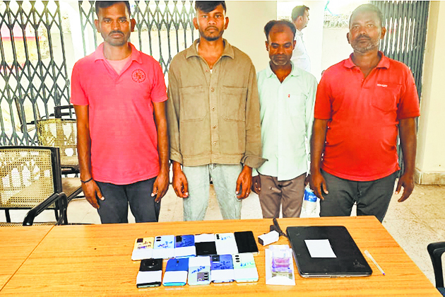 बिहारशरीफ. अस्थावां थाना पुलिस ने चुलिहारी गांव में एक बड़ी कार्रवाई करते हुए चार साइबर अपराधियों को गिरफ्तार किया है. इस छापेमारी के दौरान पुलिस ने एक देसी कट्टा, एक लैपटॉप, 11 मोबाइल फोन और 13 हजार रुपये नकद भी बरामद किए हैं. इसके अलावा दो नाबालिगों को भी निरुद्ध किया गया है. अस्थावां थानाध्यक्ष लाल मणि दुबे ने बताया कि बुधवार की गुप्त सूचना मिली थी कि चुलिहारी गांव में कुछ लोग साइबर अपराध से जुड़ी गतिविधियों में संलिप्त हैं. सूचना के आधार पर पुलिस टीम ने त्वरित कार्रवाई करते हुए छापेमारी की और चार साइबर अपराधियों को मौके से गिरफ्तार कर लिया.गिरफ्तार किए गए अपराधियों की पहचान जोगेंद्र पासवान, कन्हैया कुमार, कालेन्द्र पासवान और केदार पासवान के रूप में हुई है. पुलिस को इनके पास से कई आपत्तिजनक सामग्रियां मिली हैं, जिससे यह स्पष्ट होता है कि ये लोग साइबर ठगी में संलिप्त थे.पुलिस अधिकारियों ने बताया कि गिरफ्तार आरोपियों से पूछताछ की जा रही है और यह पता लगाने की कोशिश की जा रही है कि इनका नेटवर्क कहां तक फैला हुआ है. दो नाबालिगों को भी हिरासत में लिया गया है, जिनके बारे में पुलिस आगे की जांच कर रही है. अस्थावां पुलिस लगातार साइबर अपराधियों के खिलाफ कार्रवाई कर रही है. इस मामले में भी पुलिस को उम्मीद है कि आरोपियों से पूछताछ के बाद कई और अहम जानकारियां सामने आएंगी. पुलिस का कहना है कि वे इस तरह की घटनाओं को रोकने के लिए पूरी सतर्कता बरत रहे हैं और जनता से भी अपील कर रहे हैं कि यदि उन्हें कहीं साइबर ठगी से जुड़ी कोई जानकारी मिलती है तो वे तुरंत पुलिस को सूचित करें.इस कार्रवाई से क्षेत्र में साइबर अपराधियों के बीच हड़कंप मच गया है.