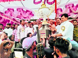 विधायक ने खिलाड़ियों का किया हौसला आफजाई शेखपुरा. आजाद हिंद क्रिकेट क्लब टूर्नामेंट के फाइनल मुकाबले में गगरी क्रिकेट क्लब विजेता बनने का गौरव हासिल किया. रामाधीन कॉलेज के मैदान पर आयोजित रोमांचक मुकाबले में गगरी क्रिकेट क्लब ने आजाद हिन्द क्रिकेट क्लब गिरिहिनडा को चार विकेट से पराजित कर दिया. विजेता और उपविजेता टीम को विधायक विजय सम्राट ने ट्राफी एवम मेडल देकर पुरस्कृत किया. वहीं,क्रिकेट एशोसियेशन की ओर से विजेता टीम को 25 हजार एवं उपविजेता को 15 हजार रूपये नगद भी दिये गये.विधायक ने कहा कि खेल में जो खिलाडी हार गये हैं उन्हें निराश नहीं होना चाहिए. मेहनत करने की जरूरत है. समारोह में जिला क्रिकेट एशोसियेशन के सचिव संजय गोप, मदन लाल, गंगा कुमार यादव, संतोष यादव, कपिल यादव, बबलू कुमार, सोनू साव के अलावा अन्य कई लोग मौजूद थे. इससे पहले टास जीतकर पहले खेलते हुए आजाद हिन्द क्लब ने निर्धारित ओवरों में 159 रन बनाये. वहीं, गगरी की टीम छह विकेट खोकर लक्ष्य को पूरा कर लिया. अंपायर की कार्य मिथलेश कुमार एवं धर्मेन्द्र कुमार ने किया. खेल में घातक गेंदबाजी करने एवं चार विकेट चटकाने पर गगरी टीम के खिलाड़ी पाणडिया कुमार को मैन आफ द मैच घोषित किया गया. खेल में रोहित ने 35 रन, अमन 50 रन, केपी 27 रन, सत्येन्द्र 20, आर्यन 14 रन बनाये. आयोजक राजेश सिन्हा एवम शंभू प्रसाद ने सभी लोगों का धन्यवाद दिया.