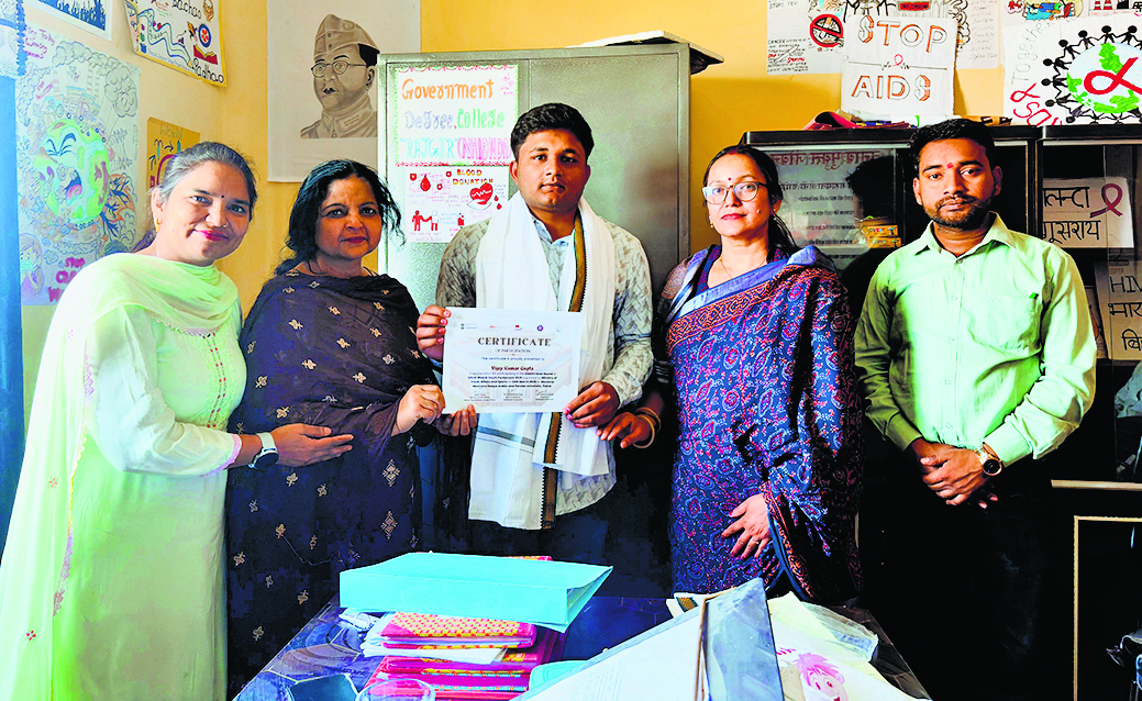 मौलाना मजरूल हक आरबी-फारसी विश्वविद्यालय में आयोजित विकसित भारत युवा सांसद नोडल जिला स्तरीय कार्यक्रम में राज्य स्तर के 10 सर्वश्रेष्ठ वक्ताओं का चयन किया गया है, जिसमें राजकीय डिग्री महाविद्यालय, राजगीर के सुमंत कुमार भी शामिल हैं. इस बाबत महाविद्यालय की एनएसएस इकाई द्वारा सम्मान समारोह का आयोजन मंगलवार को किया गया. इस अवसर पर प्राचार्य डॉ मुसर्रत जहां ने कहा कि महाविद्यालय के छात्र सुमंत कुमार का सर्वश्रेष्ठ वक्ता के पैनल में चयन होना महाविद्यालय के लिए गौरव की बात है. उन्होंने उनके उज्ज्वल भविष्य की कामना की. एनएसएस के कार्यक्रम पदाधिकारी डॉ कामना ने कहा कि छात्रों को शिक्षा के साथ हर क्षेत्र में बढ़-चढ़कर हिस्सा लेना चाहिए. इससे सामाजिक और राजनीतिक विकास होता है. विजय कुमार गुप्ता तथा सुमंत कुमार का चयन पहले जिला स्तरीय प्रतियोगिता में हुआ था. उसमें सुमंत कुमार का सलेक्शन टॉप टेन में हुआ था. हिंदी विभागाध्यक्ष डॉ शारदा कुमारी ने कहा कि महाविद्यालय में एक से बढ़कर एक होनहार छात्र पढ़ते हैं उन्हें सही दिशा निर्देश दिया जाय तो हर क्षेत्र में बेहतर प्रदर्शन कर सकेंगे. चयनित छात्र सुमंत कुमार को शुभकामनाएं देते हुए उन्होंने कहा कि सुमंत एक व्यावहारिक और होनहार छात्र हैं. छात्रों को पढ़ाई के साथ कला – संस्कृति और खेल में भी रुचि लेनी चाहिए. इस महाविद्यालय के छात्र हाल ही में पाटलिपुत्र विश्वविद्यालय के अंतर्गत सांस्कृतिक प्रतियोगिता में भी शानदार प्रदर्शन किया है. इस अवसर पर डॉ राहुल प्रसाद, डॉ कुमार सोनू शंकर, उमेश चौधरी, राजीव कुमार और आलोक कुमार, विक्की कुमार, विजय कुमार गुप्ता, विकास कुमार, आशिक कुमार, करनजीत कुमार, अनुपम कुमार, लवली कुमारी, उज्ज्वल कुमार एवं अन्य उपस्थित थे.डिस्क्लेमर: यह प्रभात खबर समाचार पत्र की ऑटोमेटेड न्यूज फीड है. इसे प्रभात खबर डॉट कॉम की टीम ने संपादित नहीं किया है