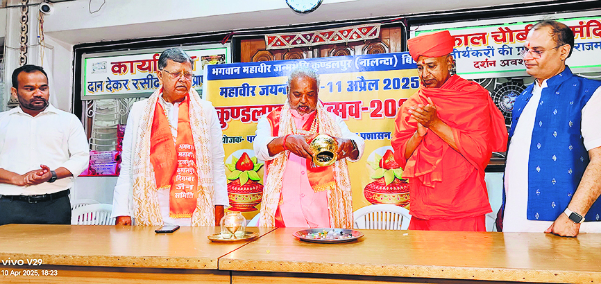 सिलाव. बिहार सरकार के ग्रामीण विकास मंत्री श्रवण कुमार ने गुरूवार को कुंडलपुर महोत्सव 2025 का उदघाटन दीप प्रज्जवलित कर किया. इस दौरान भगवान महावीर के जन्मस्थली कुंडलपुर के प्रांगण में मंत्री श्री कुमार का स्वागत किया गया. मौके पर मंत्री श्री कुमार ने कहा कि भगवान महावीर स्वामी जी के बताये गये अहिंसा एवं परम कल्याण के आदर्शों एवं रास्तों पर चलकर ही पूरे विश्व में शांति स्थापित की जा सकती है़ तत्पश्चात, मंगलाचरण, रतन वृष्टि, पुस्तक विमोचन आदि कार्यक्रम आयोजित किया गया. कुंडलपुर दिगम्बर जैन तीर्थ के पीठाधीश एवं अध्यक्ष रविंद्र कृति स्वामी जी ने इस अवसर पर कहा की भगवान महावीर का जन्म 2624 वर्ष पूर्व इसी कुंडलपुर की पावन नगरी में चैत्र शुक्ला त्रयोदशी के दिन हुआ था़ आज हम यहाँ उनका जन्म कल्याणक महोत्सव मना रहे हैं. उन्होंने आगे कहा कि भगवान महावीर का संदेश बहुत सरल था – जियो और जीने दो जिस प्रकार हमारे प्राण हमें प्रिय हैं, उसी प्रकार सभी जीव-जंतुओं और पशु-पक्षियों के प्राण उन्हें प्रिय हैं. इसलिए किसी को मारो मत, सताओ मत, परेशान मत करो – यही भगवान महावीर का मूल संदेश है. इस अवसर पर श्री कृष्ण मुरारी शरण उर्फ प्रेम मुखिया , माननीय विधायक, हिलसा, उप विकास आयुक्त, अनुमंडल पदाधिकारी सहित अन्य पदाधिकारी एवं आयोजन समिति के पीठाधीश,सदस्य गण आदि उपस्थित थे.
