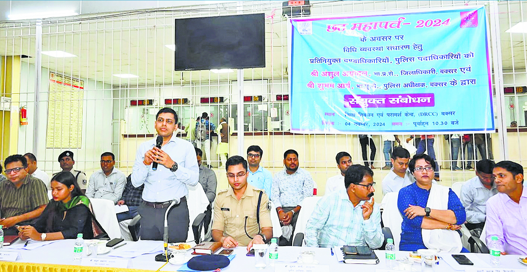बक्सर. लोकआस्था का पर्व छठ में विधि व्यवस्था को लेकर प्रतिनियुक्त दंडाधिकारियों व पुलिस पदाधिकारियों के साथ सोमवार को जिला निबंधन व परामर्श केंद्र में जिलाधिकारी अंशुल अग्रवाल, पुलिस अधीक्षक शुभम आर्या ने बैठक की. इस मौके पर डीएम ने बताया कि 5 नवंबर से नहाय-खाय से प्रारंभ होकर 8 नवंबर की सुबह अर्घ के साथ यह पर्व संपन्न होगा. जिसे लेकर विधि व्यवस्था के मददेनजर जिले में कुल 126 स्टैटिक दण्डाधिकारी/पुलिस पदाधिकारी, 28 गश्ती दल दण्डाधिकारी/पुलिस पदाधिकारी, घाटों के संपर्क पथ सुरक्षा के लिए 18 दण्डाधिकारी/पुलिस पदाधिकारी, चार जोनल दण्डाधिकारी/पुलिस पदाधिकारी, गंगा नदी में दो गश्ती पदाधिकारी/पुलिस पदाधिकारी व 15 क्यूआरटी की प्रतिनियुक्ति की गई है. डीएम ने कहा कि छठ पर्व को लेकर सभी कार्यपालक पदाधिकारी नगर निकाय बक्सर जिला को नगर क्षेत्र में एवं सभी प्रखंड विकास पदाधिकारी को ग्रामीण क्षेत्रों में सभी घाटों पर मजबूत बल्लों से सुरक्षात्मक बैरिकेटिंग का कार्य अंतिम रूप से छठ पर्व से दो दिन पूर्व कराने के लिए कहा गया. खतरनाक नदी घाटों को चिन्हित कर चौकीदार के माध्यम से निगरानी कराना सुनिश्चित करेंगे. ग्रामीण इलाकों में छठ घाटों यथा पोखरा, नदी, नाहर, आहर आदि के किनारे छठ व्रतियों द्वारा छठ किया जाता है. सभी प्रखंड विकास पदाधिकारी, सभी अंचलाधिकारी एवं सभी थानाध्यक्ष को निर्देश दिया गया कि अपने स्तर से पंचायत स्तरीय अपने अधीनस्थ कर्मी यथा विकास मित्र, आवास सहायक, पंचायत रोजगार सेवक, पंचायत सचिव, हल्का कर्मचारी, किसान सलाहकार, चौकीदार, दफादार एवं पुलिस कर्मी आदि को छठ घाटों पर प्रतिनियुक्ति करते हुए विधि व्यवस्था संधारित करना सुनिश्चित करेंगे. साथ ही ग्रामीण इलाके के छठ घाटों पर भ्रमणशील भी रहेंगे. बैठक में सभी कार्यपालक पदाधिकारी नगर निकाय को निर्देश दिया गया कि घाटों एवं घाट तक जाने वाले मुख्य/संपर्क पथों की साफ सफाई भी प्रमुखता से दो दिन पूर्व ही करा लेंगे तथा उसके पश्चात भी नियमित रूप से घाटों की साफ सफाई अनवरत जारी रखेंगे. ताकि छठ व्रतियों को किसी प्रकार की असुविधा न हो. घाटों की साफ सफाई के लिए जिला नियंत्रण कक्ष एवं क्विक रिस्पांस टीम में सफाई कर्मियों का एक दल मौजूद रखने का निर्देश दिया गया. वही सभी कार्यपालक पदाधिकारी नगर निकाय को निर्देश दिया गया कि निर्बाध रूप से सभी घाटों एवं संपर्क पथों पर संपूर्ण रोशनी की व्यवस्था, महत्वपूर्ण घाटों/स्थलों पर सीसीटीवी का अधिष्ठापन, वीडियोग्राफर की प्रतिनियुक्ति एवं ड्रोन का संचालन कराना सुनिश्चित करेंगे. अनुमंडल पदाधिकारी बक्सर एवं डुमरांव इसका पर्यवेक्षण करेंगे. सभी प्रखंड विकास पदाधिकारी एवं अंचलाधिकारी को निर्देश दिया गया के 