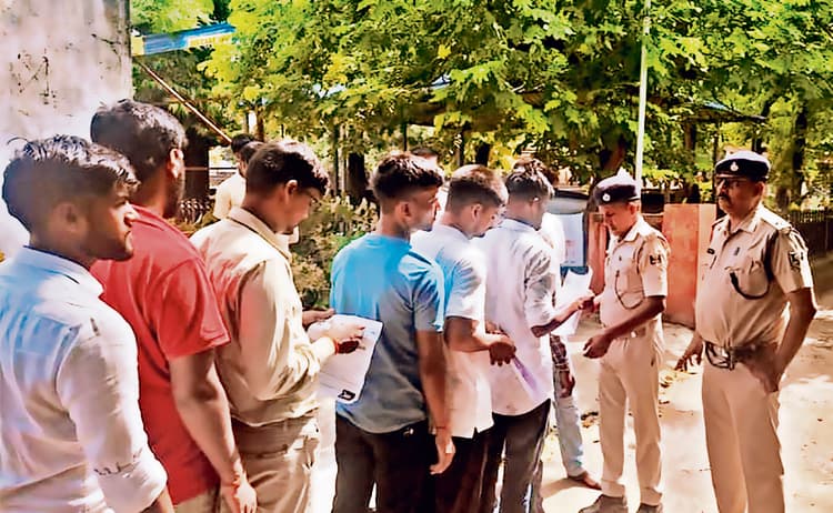 फाइल-11- कड़ी सुरक्षा के बीच ली गयी सिपाही पद के लिए लिखित परीक्षा, 3 हजार 99 परीक्षार्थी रहे अनुपस्थित -प्रभारी डीएम ने किया विभिन्न परीक्षा केंद्रों का निरीक्षण, केंद्राधीक्षकों को दिए आवश्यक निर्देश 18 अगस्त- फोटो-23- जांच कर परीक्षा केंद्र में प्रवेश देते प्रतिनियुक्त अधिकारी व पुलिस बक्सर. कड़ी सुरक्षा व्यवस्था के बीच जिले के 17 केंद्रों पर बिहार पुलिस एवं अन्य इकाईयों में सिपाही के पद पर चयन हेतु रविवार को परीक्षा ली गई. आयोजित लिखित परीक्षा के सफल आयोजन एवं विधि व्यवस्था संधारण हेतु प्रभारी जिला पदाधिकारी बक्सर कुमारी अनुपम सिंह के द्वारा विभिन्न परीक्षा केंद्रों का निरीक्षण किया गया. इस दौरान उनके द्धारा केंद्राधीक्षकों को कदाचार मुक्त परीक्षा को लेकर निर्देशित किया गया. इसके पूर्व परीक्षा को लेकर परीक्षार्थी निर्धारित समय से पहले ही केंद्रों पर पहुंच गये थे. जिससे वे निर्धारित समय से केंद्र में प्रवेश कर सकें तथा परीक्षा से वंचित नहीं हो सकें. परीक्षा एक पाली में ली गई. जिसमें 6 हजार 641 परीक्षार्थी उपस्थित एवं 3 हजार 99 परीक्षार्थी परीक्षा में अनुपस्थिति रहे. सभी परीक्षा केंद्रों पर निर्धारित समय 9 बजकर 30 मिनट पर प्रवेश दिया गया. इसके साथ ही निर्धारित समय 11 बजे के बाद किसी भी परीक्षार्थी को परीक्षा हॉल में प्रवेश नहीं दिया गया. केंद्रों पर विधिवत चीट पूर्जों तथा इलेेक्ट्रॉनिक डिवाईस की पूरी तरह से जांच के बाद प्रवेश दिया गया. वहीं परीक्षा के सफल आयोजन को लेकर प्रभारी जिला पदाधिकारी बक्सर कुमारी अनुपम सिंह के द्वारा एमपी उच्च विद्यालय बक्सर, इटाढ़ी रोड लालगंज डीएवी पब्लिक स्कूल बक्सर, गुरूदास मठिया इटाढ़ी रोड स्थित फाउंडेशन स्कूल बक्सर, सरस्वती विद्या मंदिर अहिरौली बक्सर एवं कैंब्रिज सीनियर सेकेंडरी स्कूल कथकौली बक्सर का निरीक्षण किया गया. जिला दंडाधिकारी बक्सर के द्वारा संबंधित विद्यालयों के परीक्षा कक्ष में चल रहे परीक्षा की जांच किया गया. परीक्षा केंद्र पर कदाचारमुक्त एवं शांतिपूर्ण परीक्षा संचालन के संबंध में प्रतिनियुक्ति केंद्राधीक्षक एवं दंडाधिकारियों को आवश्यक निर्देश दिए गए. जिला नियंत्रण कक्ष बक्सर से प्राप्त सुचनानुसार बिहार पुलिस एवं अन्य इकाईयों में सिपाही के पद पर चयन हेतु आयोजित लिखित परीक्षा में कुल 9740 परीक्षार्थियों को शामिल होना था. जिसमें कुल 6 हजार 641 परीक्षार्थी परीक्षा में शामिल हुए. वहीं कुल 3 हजार 99 परीक्षार्थी परीक्षा में अनुपस्थित रहे. वहीं निष्कासित परीक्षार्थियों की संख्या शून्य है. सभी परीक्षा केंद्रों पर परीक्षा कदाचारमुक्त एवं शांतिपूर्ण वातावरण में संपन्न हुई.