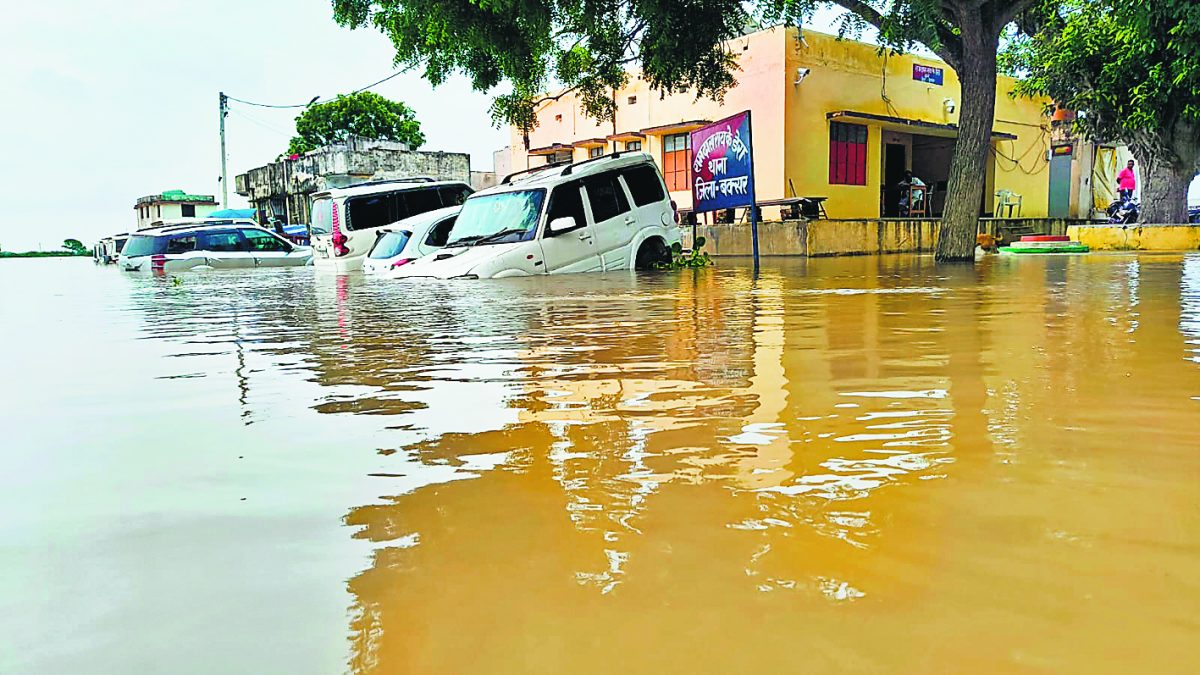 बक्सर में पानी में डूबा थाना