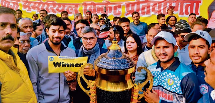 बक्सर. किला मैदान में शुक्रवार को खेले गये 19वीं फैज मेमोरियल क्रिकेट प्रतियोगिता के फाइनल मैच के एकतरफा मुकाबला में पटना ने मुजफ्फरपुर को 96 रनों से पराजित कर टूर्नामेंट पर कब्जा जमा लिया. इसी के साथ ही लगातार 19 वर्षों से 11 जनवरी से 17 जनवरी तक खेले जाने वाले फैज मेमोरियल क्रिकेट प्रतियोगिता का समापन हो गया. इस क्रम में स्व. फैज अहमद को श्रद्धांजलि दी गयी. पहले खेलते हुए पटना की टीम ने निर्धारित 21 ओवर में 06 विकेट के नुकसान पर 230 रनों का विशाल स्कोर खड़ा किया. जिसमें शमीम राठौर एवं मंगल महरुर ने 40-40 रन, विपिन सौरव ने 53 ,कुमार रजनीश ने 31 हर्ष राज ने नाबाद 25 रन, आकाश राज ने 19 रनों का योगदान किया. मुजफ्फरपुर की तरफ से आदित्य एवं हंसराज को दो-दो विकेट मिला. जवाब में बल्लेबाजी करने उतरी मुजफ्फरपुर की टीम 14.3 ओवर में 134 रन बनाकर अपना सभी विकेट गंवा बैठी. जिसमें अतुल प्रियांक सर्वाधिक 35 रन, आकाश सिंह 19 रन, रजनीकांत 14 रन, सोनू 12 व सुदर्शन का 27 रनों का योगदान रहा. पटना के शमीम राठौर ने घातक गेंदबाजी करते हुए 5 विकेट, सूरज कश्यप ने 2 तथा आकाश आदित्य व कुंदन एक-एक विकेट चटकाए. मैच में एम्पायर बीसीए के राजेश यादव एवं जितेंद्र राय थे. कमेंटेटर जितेंद्र प्रसाद एवं विक्की जायसवाल, स्कोरर रोहित कुमार व अंकित साहनी तथा सजीव प्रसारण सुशांत ब्लास्टर द्वारा किया गया. पुरस्कार वितरण कार्यक्रम का संचालन अखिलेश पांडेय एवं धन्यवाद ज्ञापन नेयामतुल्लाह फरीदी द्वारा किया गया. मौके पर आयोजन समिति के सदस्यों में संजय राय, गुड्डू सिंह,फसीह आलम, इंद्र प्रताप सिंह, नंदू पांडेय, पप्पू चौबे, बबलू बल्ली, मनीष पासवान, पुष्पराज, सैफ अंसारी, टार्जन खान, राजेश यादव, शमीम अंसारी, मनीष कुमार, झब्बू राय व मनोज राय समेत अन्य उपस्थित रहे.