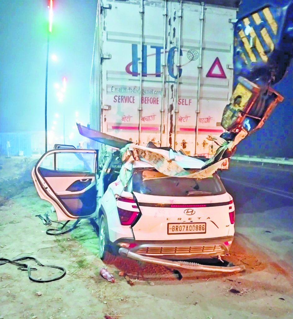 कार ने खड़े ट्रक में मारी टक्कर, एक की मौत, पांच जख्मी, सभी जा रहे थे कुंभ स्नान करने