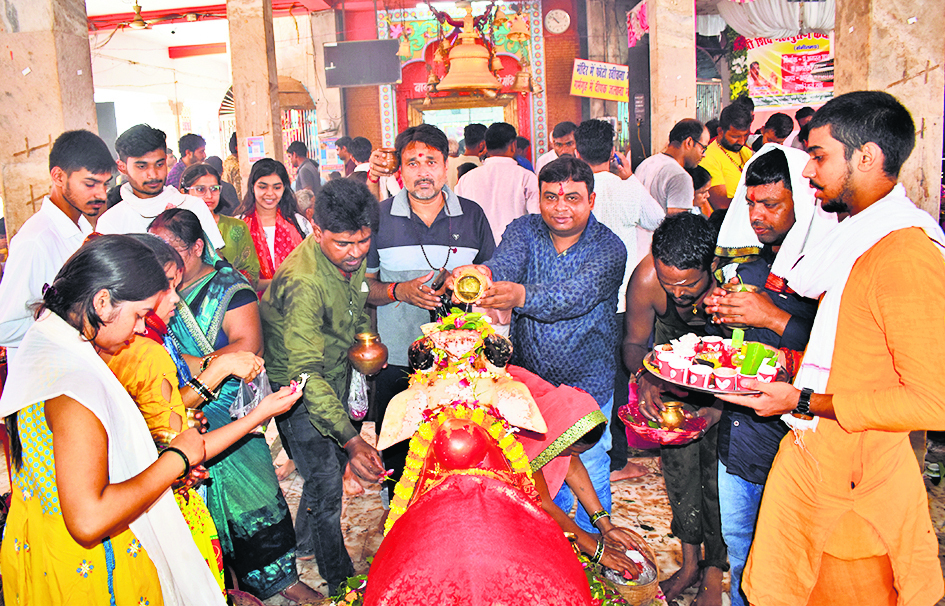 19 अगस्त- फोटो- 15- नाथ मंदिर में जलाभिषेक करते श्रद्धालु