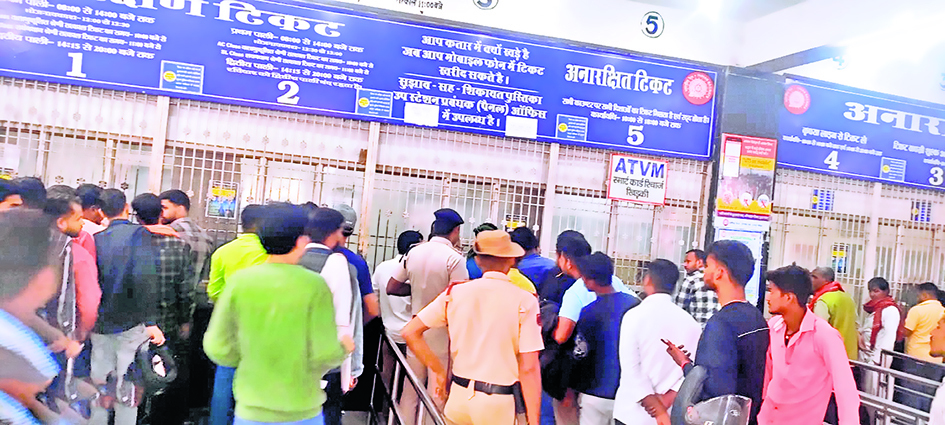 बक्सर. छठ पर्व खत्म होने के बाद लोग अपने काम पर वापस लौटना शुरू कर दिये हैं, जिसे लेकर बक्सर स्टेशन पर दिल्ली, मुंबई, बेंगलुरु, अहमदाबाद जाने वाली ट्रेनों में भीड़ हो गयी है. हालांकि रेलवे ने छठ पर्व समाप्त होने के बाद परदेसी यात्रियों की सुविधाओं का ख्याल रखते हुए बिहार एवं आसपास के दूसरे राज्यों में में जाने वाले यात्रियों के लिए विशेष इंतजाम किया है, जिसे लेकर कई दर्जन स्पेशल ट्रेनों का परिचालन किया गया है. वहीं नयी दिल्ली जाने वाले यात्रियों की सुविधा के लिए भी एक जोड़ी अतिरिक्त पूजा स्पेशल ट्रेनों का परिचालन किया गया है. बावजूद इसके छठ पर्व खत्म होने के बाद ट्रेनों में टिकट के लिए मारामारी शुरू हो गयी है. तत्काल टिकट के लिए प्रतिदिन यात्री आपस में भिड़ रहे हैं जिससे स्टेशन परिसर में अफरा-तफरी का माहौल कायम हो जा रहा है. वहीं आरपीएफ को सुरक्षा व्यवस्था को लेकर कड़ी मशक्कत करनी पड़ रही है. तत्काल टिकट के एक घंटा पहले ही आरपीएफ यात्रियों को लाइन में खड़ा कर टिकट दिलवा रहे हैं, लेकिन कई बार आरपीएफ के जवानों के रहने के बाद भी यात्री आपस में भिड़ जा रहे हैं. छठ पर्व के बाद से रिजर्वेशन काउंटर पर आरपीएफ के जवान ड्यूटी कर रहे हैं. सुरक्षित टिकट नहीं मिलने के कारण जेनरल बोगी में यात्री सफर करने को विवश है. आरपीएफ इंस्पेक्टर दीपक कुमार ने बताया कि यात्रियों की सुविधाओं के लिए सुरक्षाकर्मी प्लेटफाॅर्म पर तैनात कर दिये गये हैं. यात्री सुविधा और सुरक्षा से जुड़े और भी कई प्रबंध किये गये हैं. ट्रेनों के आवागमन को लेकर पूछताछ काउंटर पर माइकिंग करने को लेकर स्टेशन मास्टर को कहा गया हैं. वही प्लेटफार्म पर ट्रेनों के आगमन व प्रस्थान को लेकर यात्रियों को भी सतर्क रहने और अपने सामान की रक्षा स्वयं करने को लेकर माइकिंग की जा रही है.