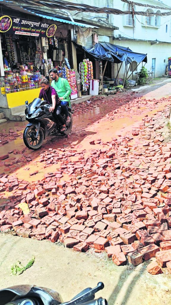 नगर परिषद के पीछे जलजमाव के कारण टूटी सड़क हादसे को दे रहा निमंत्रण