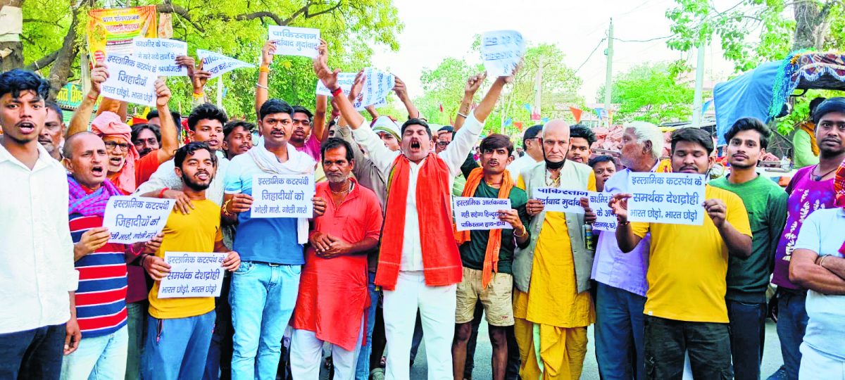 डुमरांव. गुरुवार को कोरानसराय बाजार में कश्मीर के पहलगाम में हुए सैलानियों पर कायराना आतंकी हमले के विरुद्ध आक्रोश मार्च निकाला गया, आक्रोश मार्च का नेतृत्व संतोष दूबे ने की. वहीं संचालन शंकर शाह ने किया, आक्रोश मार्च में शामिल लोगों ने हाथ में लिए तख्तियों पर पाकिस्तान मुर्दाबाद, इस्लामिक कटरपंथी जेहादियों को गोली मारो गोली मारो, इस्लामिक आतंकवाद नहीं सहेगा हिंदुस्तान आदि के नारे लगाये और भारत सरकार से पाकिस्तान पर हमला करने की मांग की. आक्रोश मार्च में लोग शामिल होकर भारत सरकार से पाकिस्तान को नेस्तनाबूद करने की मांग करते हुए विपिन बिहारी सिंह ने मोदी सरकार से पाकिस्तान का भूगोल बदल देने की मांग करते हुए भारत माता की जय का नारा लगाया. आक्रोश मार्च में शामिल लोगों में दया शंकर तिवारी, मनोज सिंह, विपिन बिहारी सिंह, मनोज कुमार सिंह, भोला तिवारी, राजेंद्र गुप्ता, दीनबंधु सिंह, रमेश चंद्र राय, नंदलाल पंडित, भोला कुमार, सोनू कुमार, प्रकाश कुमार, कारगिल कुमार, दीपू कुमार, संदीप, रामनारायण शर्मा, गोलू कुमार, सागर कुमार, मार्कंडेय दूबे, अजय कुमार, कुंदन कुमार, आदित्य, रोहित तिवारी सहित काफी संख्या में लोग उपस्थित थे. कश्मीर में हुए आतंकी हिंदू नरसंहार पर अधिवक्ताओं ने मनाया शोक