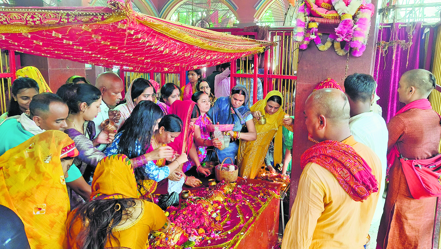 बक्सर. शक्ति की अधिष्ठात्री मां दुर्गा की आराधना का पर्व शारदीय नवरात्र गुरुवार को शुरू हो गया. पहले दिन कलश स्थापन के साथ मां भगवती की आराधना का नौ दिवसीय अनुष्ठान किया गया. इसके बाद देवी के प्रथम स्वरूप मां शैलपुत्री की उपासना एवं दुर्गा सप्तशती का पाठ किया गया. पूजा-पाठ के कारण पंडालों से लेकर घर-घर वैदिक मंत्रोच्चार से गुंजायमान हो गया. देवी भक्त मंदिरों में जाकर दर्शन-पूजन किए और माता रानी के दर पर मत्था टेक मनोकामना पूर्ण होने की कामना किए. शारदीय नवरात्र का पर्व अश्विन मास के शुक्लपक्ष की प्रतिपदा तिथि से शुरू होता है तथा नवमी तिथि को संपन्न होता है. नवमी तिथि को हवन के साथ नौ दिवसीय अनुष्ठान की पूर्णाहुति की जाएगी. देवी मंदिरों में श्रद्धालुओं की उमड़ी भीड़ : नवरात्र के पहले दिन देवी दर्शन के लिए मंदिरों व शक्तिपीठों में श्रद्धालुओं के तांता लग गए. तड़के विस्तर छोड़ नित्य क्रिया से निबटने के बाद श्रद्धालु स्नान किए और मंदिरों में चले गए. जहां चंदन, पुष्प, धूप, दीप व नैवेद्य अर्पित कर मां भगवती का विधि-विधान से पूजा किए. देर शाम मंदिरों में महा आरती की गई और प्रसाद वितरण किए गए. वैदिक मंत्रोच्चार के बीच हुई कलश स्थापन : शहर समेत जिले भर के दुर्गा पूजा पंडालों में कलश स्थापना किए गए. वैदिक विधि-विधान के साथ मंत्रोच्चार के बीच आचार्यों ने कलश स्थापित कराई. देवी मां के भक्त उपवास व्रत रखकर दुर्गा सप्तशती के पाठ किए. पर्व को लेकर बाजारों में भी चहल-पहल रहा. पूजा को लेकर फूल की बिक्री बढ़ गयी थी. वहीं केसठ में प्रखंड क्षेत्र में शारदीय नवरात्र कलश स्थापना के साथ ही गुरुवार को आरंभ हो गया. इसके साथ ही दुर्गा सप्तसती के पाठ से घर, मंदिर व पूजा पंडाल गूंजने लगे हैं. केसठ नया बाजार स्थित मां भवानी मंदिर, दसियांव, केसठ, कतिकनार, रामपुर के काली मंदिर समेत अन्य मंदिरों में श्रद्धालुओं एवं भक्तों की पूजा-अर्चना के लिए काफी भीड़ रही. इधर नया बाजार, पुराना बाजार, कतिकनार समेत अन्य स्थलों पर पूजा- पंडालों में वैदिक मंत्रोच्चारण के साथ कलश स्थापना की गयी. जय माता दी के जयघोष से पूरा वातावरण भक्तिमय हो गया. ग्रामीण क्षेत्रों के पूजा पंडालों में भक्ति धुन गूंजने लगे है. वहीं भक्तों ने अहले सुबह जगकर स्नान ध्यान किया. वही केसठ पंचायत के मुखिया अरविंद कुमार सिंह उर्फ गामा पहलवान एवं स्वच्छता पर्यवेक्षक संजय प्रसाद ने बताया कि दुर्गा पूजा समेत अन्य पर्व त्योहारों को लेकर बाजार समेत पंचायत के विभिन्न वार्डों में स्वच्छता अभियान कार्यक्रम जोर शोर से चलाया जा रहा है. वहीं डुमरांव में गुरुवार को प्रखंड के विभिन्न क्षेत्रों के पूजा पंडालों में वैदिक मंत्रोच्चारण के साथ कलश स्थापना की गयी. वहीं प्र