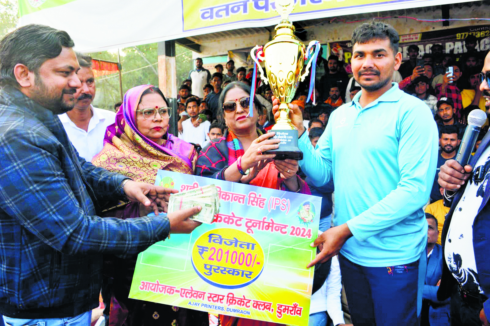 फाइनल मैच में मैन ऑफ द मैच का पुरस्कार पियूष आर्य को रविन्द्र सिंह व शहदूल यादव के हाथों दिया गया. विजेता टीम मध्य प्रदेश को दो लाख एक हजार और उप विजेता बिहार को 75 हजार की नकद राशि और टूर्नामेंट के बेस्ट परफॉर्मर अजय यादव को अपाचे बाइक उपहार स्वरूप प्रदान की गयी. मैच में कॉमेंटेटर के रूप में मनोज कुमार और अजितेश कुमार उपस्थित रहे. स्कोरर के रूप में चेतन रहे. मैच के दौरान नंद जी सिंह, संजय तिवारी, संजय पांडे, अशोक ठीकेदार, बाबा यादव, राकेश सोनी, अमित चंद्रवंशी, नंदजी सिंह, संजय तिवारी, विनोद वर्मा, रोहित जी, दिलीप शर्मा, दीपक यादव, रिंकु चौबे, पंकज दुबे, ब्रम्हा ठाकुर, अजीत चंद्रवंशी, श्रेयांश शर्मा, स्वयं शक्ति के धीरज मिश्रा उर्फ टीका, सर्वेश पांडेय, प्रिंस के अलावे आयोजक मंडल के संयोजक नरेंद्र नाथ ओझा तथा आयोजन में प्रमुख भुमिका निभाने वाले संजय शर्मा व अन्य कई गणमान्य लोग उपस्थित थे.डिस्क्लेमर: यह प्रभात खबर समाचार पत्र की ऑटोमेटेड न्यूज फीड है. इसे प्रभात खबर डॉट कॉम की टीम ने संपादित नहीं किया है