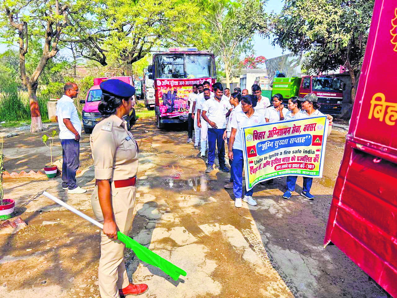 बक्सर. अग्नि सुरक्षा सप्ताह के तीसरे दिन बुधवार को बक्सर अग्निशमन विभाग के बैनर तले एक जागरूकता मैराथन का आयोजन किया गया. यह मैराथन बाजार समिति अग्निशमालय से प्रारंभ होकर ज्योति चौक होते हुए गोलंबर जाकर समाप्त हुआ. इसका उद्देश्य आम जनता में अग्नि सुरक्षा एवं बचाव के प्रति जागरूकता फैलाना था. आयोजन में जिले के जिला अग्निशमन विनोद कुमार यादव, प्रशिक्षु जिला अग्निशमन पदाधिकारी मंजीत सिंह, सहायक जिला अग्निशमन पदाधिकारी सत्यदेव सिंह तथा अनुमंडल अग्निशमन पदाधिकारी शिखा कुमारी शामिल थे. मैराथन में स्थानीय नागरिकों, अग्निशमन कर्मियों, गृह रक्षकों और सामाजिक संगठनों ने बढ़-चढ़ कर भाग लिया. प्रतिभागियों को अग्नि सुरक्षा के उपायों की जानकारी दी गयी और जागरूकता सामग्री वितरित की गयी. कार्यक्रम में अधिकारियों ने लोगों से अपील की कि वे अग्नि सुरक्षा के नियमों का पालन करें तथा किसी भी आपातकालीन स्थिति में सतर्क रहें. अग्निशमन विभाग ने बताया कि अग्नि सुरक्षा सप्ताह के दौरान विभिन्न जन-जागरूकता कार्यक्रमों का आयोजन जिले में किया जायेगा. नाली की सफाई के लिए वार्ड सदस्य ने बीडीओ को दिया आवेदन