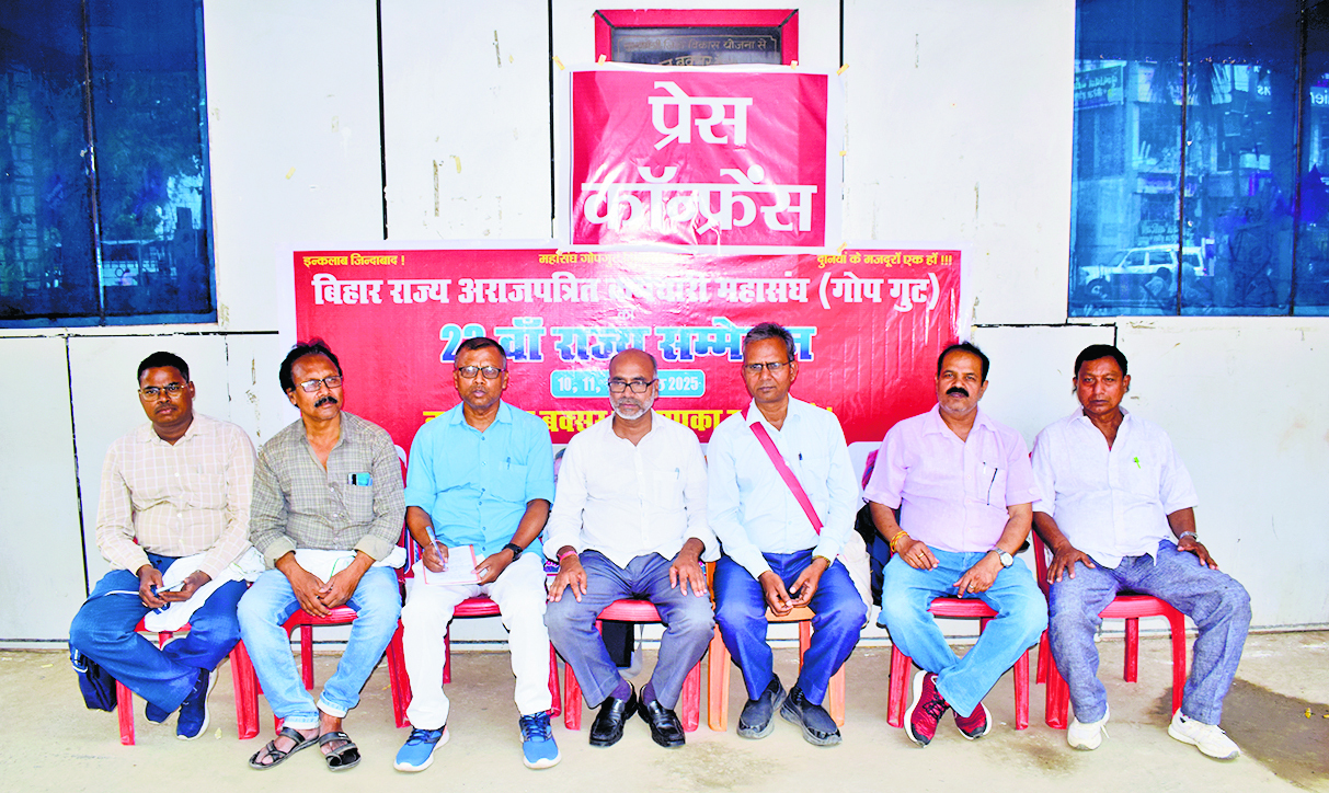 बक्सर. बिहार राज्य अराजपत्रित कर्मचारी महासंघ (गोप गुट) का तीन दिवसीय (10, 11 एवं 12 अप्रैल) 23वां राज्य सम्मेलन बक्सर के नगर भवन में 10 अप्रैल को उद्घाटन सत्र से शुरू होगा. वहीं प्रतिनिधि सत्र का संचालन 12 अप्रैल तक नगर भवन में संपन्न होगा. बुधवार को इसकी जानकारी नगर भवन परिसर में प्रेसवार्ता कर महासंघ (गोप गुट) के महासचिव प्रेमचंद कुमार सिन्हा एवं राज्य सचिव लवकुश सिंह ने दी. उन्होंने बताया कि 10 अप्रैल को नगर भवन में खुला सत्र उद्घाटन से सम्मेलन की शुरुआत होगी. सम्मेलन शुरू होने से पूर्व शिक्षक कर्मचारी जुलूस के शक्ल में शहर के प्रमुख मार्गोँ पर भ्रमण करते हुए नगर भवन पहुंचेंगे. उसके बाद राज्याध्यक्ष निरंजन कुमार सिन्हा द्वारा झंडोतोलन कर शहीद वेदी पर पुष्पांजलि अर्पित किया जायेगा. इसके बाद ऐक्टू के राष्ट्रीय महासचिव राजीव डिमरी द्वारा खुले सत्र का उद्घाटन किया जायेगा. नेता द्वय ने बताया कि यह राज्य सम्मेलन अधिकार-सामाजिक सुरक्षा व सम्मान-समानता सहित कंपनी राज के चंगुल से देश को वापस करने, पुरानी पेंशन बहाल करने, संविदा -आउटसोर्स- दैनिक वेतन भोगी कर्मियों की सेवा नियमित करने, श्रमिकों के कठिन परिश्रम से अर्जित 44 श्रम अधिकारों को वापस लेने, श्रमिक विरोधी, श्रम संहिताओं और नए आपराधिक कानूनों को वापस लेने, सम्मानजनक नौकरियों, वेतन और घृणा से भरे नीतीश – मोदी शासन को निर्णायक रूप से हराने के लिए एकजुट हो जाने के नारे पर आयोजित होगा. इस राज्य सम्मेलन को ऐक्टू के राष्ट्रीय महासचिव राजीव डिमरी, माले के सांसद सुदामा प्रसाद, माले विधायक अरुण सिंह, अजीत कुमार सिंह, शिव प्रकाश रंजन, स्कीम वर्कर की राष्ट्रीय नेत्री व माले की एमएलसी शशि यादव, धीरेंद्र झा, राष्ट्रीय महासचिव, खेत एवं ग्रामीण मजदूर सभा आदि नेता प्रमुख रूप से संबोधित करेंगे. उन्होंने बताया कि मजदूर अधिकारों के लिए संघर्षरत स्कीम वर्कर्स, नियमितीकरण के अधिकार के लिए विजयी संघर्ष का नेतृत्व करने वाले सफाई, संविदा-ठीका व आउटसोर्स कर्मचारी, नौकरियों के ठेकाकरण और पेंशन अधिकारों के कमजोर पड़ने, एनपीएस के खिलाफ ओपीएस के लिए संघर्ष का नेतृत्व करने, सम्मानजनक वेतन, नियोजित शिक्षकों को राज्यकर्मी का दर्जा देने, सामाजिक सुरक्षा के लिए राज्य सम्मेलन में भाग लेने जा रहे हैं. महासंघ (गोप गुट) के राज्य सचिव लवकुश सिंह ने बताया कि सम्मेलन में इन मुद्दों पर व्यापक चर्चा होगी. मोदी राज में छीने गए 44 श्रम कानूनों की वापसी, साम्प्रदायिक घृणा व नफरती कारपोरेट -कंपीनी राज व निजीकरण की समाप्ति, पुरानी पेंशन बहाली, ठीका -मानदेय- आउटसोर्स पर रोक एवं सामाजिक सुरक्षा की गारंटी ,स्कीम वर्कर को गुलामों की तरह खटाने पर रोक एवं सरकारी कर्मी का दर्जा तथा ओप