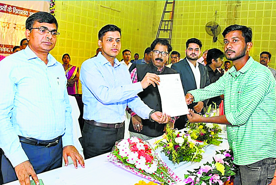. बिहार लोक सेवा आयोग पटना द्वारा आयोजित विद्यालय अध्यापक प्रतियोगिता परीक्षा (तृतीय चरण) में उत्तीर्ण व सफलतापूर्वक काउंसिलिंग करा चुके जिले के 772 अभ्यर्थियों को रविवार को औपबंधिक नियुक्ति पत्र वितरण कार्यक्रम राज्य के सभी जिलों में आयोजित किया गया. कार्यक्रम नगर के नगर भवन में आयोजित किया गया. जहां डीएम के हाथों नियुक्ति पत्र वितरण कार्यक्रम का शुभारंभ किया गया.वहीं इसके पूर्व नगर भवन में आयोजित कार्यक्रम का शुभारंभ का विधिवत पटना से सीएम नीतीश कुमार के हाथों चयनित शिक्षकों को नियुक्ति पत्र वितरित कर किया गया. जिसका सीधा प्रसारण नगर भवन में आयोजित कार्यक्रम स्थल पर किया गया. पटना में सीएम के हाथों नियुक्ति पत्र वितरण के बाद व संबोधन के बाद जिले में डीएम के हाथों से जिले के शिक्षकों को नियुक्ति पत्र वितरित कर शुभारंभ किया गया. साथ ही बक्सर जिलांतर्गत चयनित विद्यालय अध्यापकों (तृतीय चरण) को रविवार को नगर भवन में जिला पदाधिकारी बक्सर अंशुल अग्रवाल की उपस्थिति में औपबंधिक नियुक्ति पत्र वितरण किया गया. बक्सर जिले में कुल 772 अभ्यर्थियों को औपबंधिक नियुक्ति पत्र का वितरण किया गया. जिसमें वर्ग 1-5 में कुल 286, वर्ग 6-8 में कुल 181, वर्ग 9-10 में कुल 206 एवं वर्ग 11-12 में कुल 99 अभ्यर्थियों को नियुक्ति पत्र वितरित किया गया. जिलाधिकारी ने चयनित सभी शिक्षकों को दीं शुभकामनाएं : जिलाधिकारी ने अपने संबोधन में कहा कि मुख्यमंत्री बिहार द्वारा राज्य के बच्चों को निःशुल्क एवं गुणवत्तापूर्ण शिक्षा प्रदान करने के उद्देश्य से रिकॉर्ड समय में शिक्षकों की नियुक्ति की गई है. विद्यालय अध्यापक प्रतियोगिता परीक्षा प्रथम चरण में 1 लाख 20 हजार 336 शिक्षकों की बहाली संपन्न हुई. जिसमें बक्सर जिले के कुल 1765 शिक्षकों को योगदान कराया जा चुका है. द्वितीय चरण में 96 हजार 823 शिक्षकों की बहाली संपन्न हुई. जिसमें बक्सर जिले के कुल 1106 शिक्षक अभ्यर्थियों को विद्यालयों में योगदान कराया जा चुका है, जो राज्य के बच्चों को गुणवत्तापूर्ण शिक्षा प्रदान करने में अपनी अहम भूमिका निभा रहे हैं. जिलाधिकारी ने बताया कि मुख्यमंत्री द्वारा महिला सशक्तिकरण हेतु कई प्रयास किया जा रहे हैं. कुल चयनित प्रारंभिक शिक्षकों में 56 प्रतिशत महिलाये हैं.कुल चयनित माध्यमिक व उच्च माध्यमिक शिक्षकों में 40 प्रतिशत महिलाये हैं. इसके साथ-साथ बिहार में छात्र शिक्षक अनुपात सुधार कर 32:1 के अनुपात पर आ पहुंचा है. बिहार सरकार द्वारा गुणवत्तापूर्ण शिक्षा की दिशा में प्रभावी कदम लिए जा रहे हैं. विभिन्न सरकारी संस्थाओं एवं कार्यालय तथा बहुराष्ट्रीय कंपनियों में कार्यरत अभ्यर्थियों तथा कॉन्वेंट विद्यालय केंद्रीय विद्यालयों के अध्यापकों की भी परीक्षा उत्तीर
