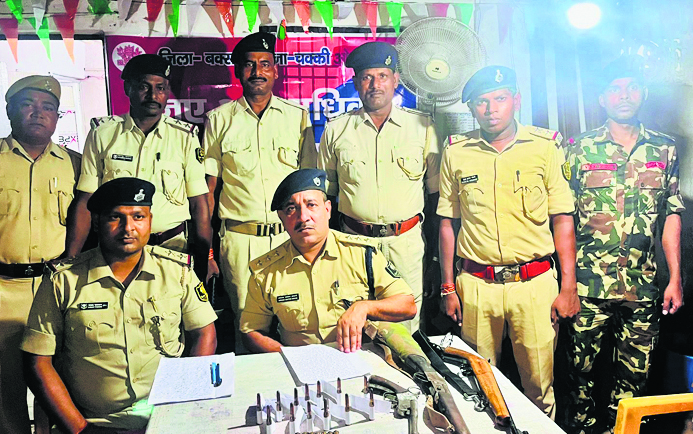 फाइल- 20- 27 अगस्त- फोटो- 17- प्रेसवार्ता करते डीएसपी गोलियों की तड़तड़ाहट से गूंजा उठा था चक्की, छह लोग हुए थे जख्मी चक्की. चक्की थाना क्षेत्र के चुन्नी डेरा गांव में जमीन विवाद को लेकर सोमवार को दो पक्षों में भाला व लाठी के साथ करीब 20 से 25 राउंड गोलियां चलाई गईं. जिससे मौके पर अफरा तफरी का माहौल कायम हो गया. इसमें छह लोग गंभीर रूप से जख्मी हो गये. जख्मी लोगों को नाजुक हालत देखते हुए बेहतर इलाज के लिए सदर अस्पताल भेज दिया गया. इस मामले में प्रेस वार्ता में जानकारी देते हुए एसडीपीओ आफाक अख्तर अंसारी ने बताया कि सोमवार को सूचना मिली कि चक्की चुन्नी डेरा गांव में जमीनी विवाद में दो पक्ष आपस में लड़ रहे हैं. सूचना मिलते ही वरीय पदाधिकारी को जानकारी दी गयी. चक्की थाना के थाना प्रभारी संजय पासवान के नेतृत्व में एक टीम गठित की गयी. टीम को घटनास्थल पर भेजा गया. जिसमें 6 लोग जख्मी थे. जख्मी लोगों को इलाज के लिए अस्पताल भेजा गया. साथ ही एक पक्ष से चार लोगों को गिरफ्तार किया गया. शिवाजी राय, पिता लाल बाबू राय, ललन राय, पिता केश्वर राय, भारत यादव, पिता इनर यादव, दयाशंकर राय शामिल है. दूसरे पक्ष से छह लोगों को गिरफ्तार किया गया. संजय सिंह, पिता सत्यनारायण सिंह, संतोष कुमार सिंह, पिता बबन सिंह, रोहित कुमार, पिता ददन सिंह, सुरेश सिंह स्वर्गीय गोविंद सिंह, मनोज सिंह को गिरफ्तार कर लिया गया. गिरफ्तार व्यक्तियों पर कानूनी कार्रवाई करते हुए कांड संख्या 4/24 एवं 5/24 दर्ज कर सभी को जेल भेज दिया गया. इसके बाद पुलिस के द्वारा घटनास्थल पर रेड की गई. रेड के दौरान एक सिंगल वायरल राइफल एक मिनी राइफल एक देसी कट्टा के साथ 13 जिंदा कारतूस 8 एमएम, 13 उपयोग किया हुआ कारतूस (खोखा) 8 एमएम बरामद किया गया है. पुलिस देर रात तक घटनास्थल पर छानबीन कर रही थी. गोलियां चलाने वालों का अभी पता नहीं चल पाया है. सभी के हाथ का सेम्पल लिया गया है. जांच चल रही है .जांच होने के बाद छान बीन कर पता लगा लिया जाएगा कौन-कौन गोली चलाए हैं. मिली जानकारी के अनुसार कमलेश सिंह के स्थानीय पड़ोसी सुगन सिंह के साथ वर्षों पूर्व से एक ही जमीन पर विवाद चल रहा था. इस जमीन को लेकर कई बार दोनों पक्ष के बीच झगड़ा भी हुआ है. इसी बीच सोमवार को सुबह ललन सिंह ने खेत जोतवाने के लिए गए थे. तभी दूसरे पक्ष के सुगन सिंह भी आ गए बातचीत होते-होते झगड़ा होने लगी तभी दोनों पक्षों के बीच लाठी, डंटे, भला व फरसा चलने लगा. देखते ही देखते गोलियां चलने लगी. दोनों तरफ से करीब 20 से 25 राउंड गोलियां चलाई गई. जिससे क्षेत्र में अफरातफरी का माहौल कायम हो गया. देखते ही देखते छव लोग जख्मी हो गए. कमलेश सिंह ने बताया कि इस मामले को लेकर कई बार थाना में आयोजित जनता दरबार में अंचलधिकारी से भी बात की गई. लेकिन कोई निष्कर्ष नहीं निकला.