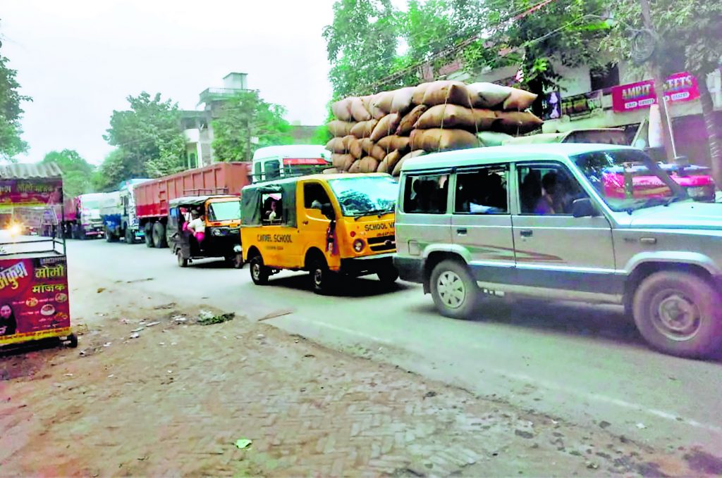 गोलंबर टर्निंग प्वाइंट पर सुबह से ही लगा जाम