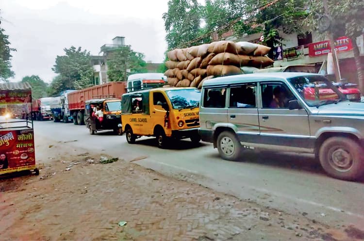 फाइल- 19- -एनएच पर फर्राटा भरने वाली वाहनें सात घंटा में 4 किमी की दूरी किया तय 25 अक्टूबर- फोटो-09- टर्निंग प्वाइंट पर अपने गंतव्य तक जाने के लिए खड़े वाहन 25 अक्टूबर- फोटो-10- गोलंबर से सिंडिकेट रोड में लगी वाहनों की लंबी लाइन 25 अक्टूबर- फोटोे-11- पटना बक्सर एवं बक्सर पटना दोनों लेन में लगी वाहनों की कतार 25 अक्टूबर- फोटो-12-गोलंबर पर पहले निकलने के लिए बेतरतीब ढंग से खड़े वाहन बक्सर. भरौली में लगने वाले वाहनों की जाम के कारण बक्सर गोलंबर टर्निंग पॉइंट पर पिछले पांच दिनों से यातायात की व्यवस्था पूरी तरह से प्रभावित हो गया है. टर्निंग प्वाइंट पर नगर मार्ग, जासो मार्ग, यूपी मार्ग एवं भोजपुर की तरफ से काफी संख्या में एक साथ वाहन पहुंच गये. जिसके कारण गुरूवार की रात 11 बजे से ही गोलंबर पर जाम की स्थिति कायम हो गई. जाम को नियंत्रित करने मे जिला प्रशासन नतमस्तक दिख रहा है. जिसके कारण अब लोगों को आम समस्या के रूप में स्वीकार करना मजबूरी साबित होने लगी है. इस नियमित जाम के कारण नगर के साथ ही जिले वासियों को परेशानी का सामना करना नियति में शामिल होने लगा है. कुछ समय के लिए संध्या समय में जाम से राहत मिलती है. लेकिन पीक ऑवर शुरू होने के साथ लोगों की परेशानी बढ़ने लगती है. सुबह 6 बजे के बाद जाम बेकाबू हो रही है. इस दौरान बालू एवं अन्य वाहनों केे साथ ही विद्यालय के काफी संख्या में वाहन पहुंंच रहे है. जिससे परेशानी का सामना आम से खास लोगों को करना पड़ रहा है. एनएच-922 पर गुरुवार की रात 11 बजे अपराह्न में जाम की स्थिति कायम हो गई. शुक्रवार को सुबह 5 बजे के बाद गंभीर स्थिति हो गई. गोलंबर टर्निंग प्वाइंट को पार करने के लिए सभी वाहनों को घंटो इंतजार करना पड़ा.यह नियमित समस्या बनती जा रही है. सुबह विद्यालयों के पीक आवर में शुक्रवार की सुबह 5 बजे के बाद काफी संख्या में गोलंबर पर पहुंचे वाहनों के कारण जाम की स्थिति और भी दयनीय हो गई. जाम बक्सर नगर के वीर कुंवर सिंह सेतु से होते हुए भरौली तक जाम लगी रही. वही एनएच- 922 पर वाहनों की कई कतारो में लाइन लगी रही. जिले में गोलंबर से 7 किलोमीटर लंबी लाइन एनएच पर टॉल प्लाजा तक लगी रही. दोपहर के बाद जाम की स्थिति कुछ कम हुई. बालू लदे ट्रक चालकों देव कुमार यादव ने बताया कि वे 2 बजे रात में दलसागर टॉल प्लाजा पार कर फंसे हैं. फिलहाल 7 किलोमीटर की दूरी तय करते हुए शुक्रवार को 7 बजे तक कतकौली गेट तक की दूरी तय किया है. वही एक मिनी ट्रक चालक राज कुमार ने बताया कि पटना से बक्सर की दूरी तय करने में महज ढाई से 3 घंटे का समय लगता है, लेकिन उसे पटना से चुरमानपुर पहुंचने में 10 घंटे का समय लग गया है. बक्सर पहुंचने में अभी काफी समय लगने की संभावना दिख रही है. पटना से बक्सर के बीच कई जगहों पर उसे एनएच पर जाम का सामना करना पड़ा है. 4-5 किलोम