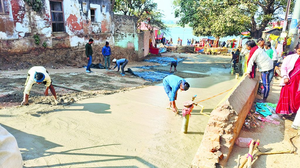 . रामरेखाघाट स्थित गंगा तट पर पहुंच पथ का निर्माण कार्य शुक्रवार को शुरू कर दिया गया है. मुख्य रोड से गंगा घाट पर सड़क के चौड़ीकरण के साथ ही पीसीसी ढलाई का कार्य नगर परिषद से कराया जा रहा है. जिसमें तेज गति से कार्य कराया जा रहा है. जिले में सीएम नीतीश कुमार के आगमन को देखते हुए इसे तेज गति से कार्य कराया जा रहा है. जिससे 15 फरवरी के पूर्व पूरा कराने का लक्ष्य नगर परिषद से निर्धारित किया गया है. हमेशा संकीर्ण दिखने वाला रामरेखाघाट सड़क फिलहाल काफी चौड़ा हो गया है. वर्तमान में जो स्थिति दिख रही है, वह आगे भी कायम रहा तो रामरेखाघाट पर जुटने वाली लाखों श्रद्धालुओं को परेशानी का सामना नहीं करना पड़ेगा. वहीं अब रामरेखाघाट गंगा तट से मुख्य सड़क की झलक भी आसानी से पाई जा सकती है. गेट एवं सड़क का निर्माण कार्य एक ही जगह व एक ही विभाग से कराया जा रहा है. लेकिन योजना को टुकड़ों में बांट कर कराया जा रहा है. जिससे निर्धारित मापदंडों से बचा जा सके. वहीं निर्माण कार्य जोरों पर है पर कहीं भी प्राक्कलन बोर्ड नहीं लगाया गया है जिससे कि निर्माण से संबंधित कार्य की जानकारी लोगों को प्राप्त हो सके. ज्ञात हो कि रामरेखाघाट जाने वाली चौड़ी सड़क सिमटकर संकीर्ण हो गई थी. अब नये रूप में यह सड़क मुख्य अन्य सड़कों से भी चौड़ी हो गयी है.खंडों में हो रहा है निर्माण कार्य : नगर परिषद से ही रामरेखाघाट जाने वाले गंगा घाट पर सड़क एवं मुख्य सड़क से रामरेखाघाट के प्रवेश द्धार पर गेट का निर्माण कराया जा रहा है. जानकारी के अनुसार रामरेखाघाट सड़क, प्रवेश गेट के साथ ही लाल टाइल्स से फुटपाथ बनाने की भी योजना शामिल है. सभी कार्य एक ही जगह व एक ही योजना से संबंधित है लेकिन इसे अलग-अलग खंडों में विभक्त कर कार्य कराया जा रहा है. जिससे निर्धारित राशि के मापदंडों के अंदर ही विभागीय स्तर पर कराया जा सके. वहीं अभी तक धार्मिक एवं पर्यटन की दृष्टिकोण से रामरेखाघाट के विकास की केवल राजनीतिक रोटी सेंकी जाती थी. लेकिन वर्तमान में रामरेखाघाट पर सीएम के प्रगति यात्रा को देखते हुए सड़क पर भी प्रगति दिखने लगी है. सीएम के रामरेखाघाट पर संभावित यात्रा को देखते हुए वर्षों पुराने वास्तिक स्वरूप में सड़क का निर्माण कार्य कराया जा रहा है. सड़क अब फोरलेन सड़क की तरह दिखने लगी है. जबकि यह सड़क सिमटकर केवल 7 से 10 फीट में रह गया था. अब वह 30 से 50 फीट के लगभग हो गई है. सीएम के आने जाने वाले सभी संभावित मार्गों व स्थलों पर जिले के विकास व प्रगति को दर्शाने में पूरा जिला प्रशासन जुटा हुआ है. जिससे सीएम के प्रगती यात्रा के दौरान जिले की विकास व प्रगति की झलक इन स्थलों पर सीएम को प्राप्त हो सके.