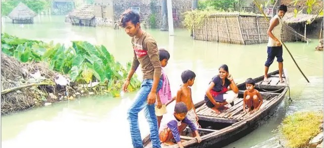बरौली. गंडक की बाढ़ ने लोगों के अरमानों पर पानी फेर दिया है. कल तक जो लोग घर से निकलते ही सड़कों पर फर्राटे भरते थे, वही आज गांव में जाने के लिए नाव का सहारा ले रहे हैं. बरौली नगर पंचायत के सुरवल के लोग सड़क पर शरण लिये हैं. घर जाने के लिए नाव इनका सहारा बनी है. विद्या प्रसाद, रतिलाल बीन, बच्चु बीन, सतेंद्र मिश्रा सहित चार सौ से अधिक परिवार बाढ़ से परेशान हैं. 215 लोगों को सरकारी पॉलीथिन मिल गया, लेकिन 350 अब भी भगवान भरोसे हैं. वार्ड पार्षद हरि यादव ने कहा कि नगर पंचायत से जो पॉलीथिन मिला बांट दिया गया.