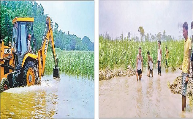 किसानों के अथक प्रयास से जेसीबी से लगभग 500 मीटर की पइन की दूरी को जेसीबी से कटवा कर जल निकास बनाया गया. जैसे ही पानी धनौती नदी में गिरना शुरू हुआ तो किसानों के चेहरे पर खुशी आई. किसानों ने उम्मीद जताई कि अब हम लोगों का गन्ना की फसल बच सकती है. दुधही गांव निवासी किसान अवधेश प्रसाद, ब्रजकिशोर प्रसाद, हरेन्द्र प्रसाद, अजय कुमार, अनिल कुमार, मुकेश कुमार, प्रभु प्रसाद आदि लोगों ने आगे आकर आर्थिक सहयोग देकर लगभग 10 घंटे से ऊपर जेसीबी चला और उस पइन के निकास को साफ कराया गया.