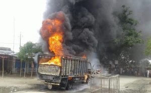 बिहार : बेतिया में सड़क हादसे में युवक की मौत पर बवाल, आक्रोशितों ने ट्रक को फूंका