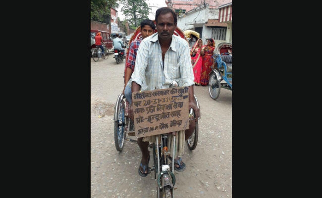 बेतिया : शहर में रिक्शा किराये को लेकर भले ही हर रोज किचकिच होती हो, लेकिन इन दिनों रिक्शा चालक इंद्रजीत साह फ्री में जरूरतमंदों को रिक्शा की सवारी करा रहे हैं. ऐसा नहीं है कि उनको समाजसेवा की ललक हो गयी है, बल्कि यह खुशी है नीतीश कुमार के छठीं बार बिहार के मुख्यमंत्री बनने की. लिहाजा इंद्रजीत ने सिर्फ दो दिनों तक शहर में नि:शुल्क सवारी ढोने की घोषणा की है. रविवार को दर्जनों यात्रियों को नि:शुल्क सैर करा इसका लाभ भी दिलाया. उनकी दीवानगी इस कदर है कि एक रिक्शा भी भाड़े पर ले लिया है. एक रिक्शा वह खुद संचालित कर रहे हैं. दूसर के संचालन के लिए मजदूरी पर चालक रख लिये हैं.