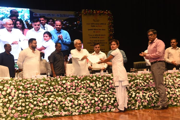 सीएम नीतीश कुमार राजधानी पटना स्थित ज्ञान भवन पहुंचे. वहां उन्होंने 24 योजनाओं का लोकार्पण किया. साथ ही 2 मेडिकल कालेजों का ऑनलाइन शिलान्यास भी किया. इस दौरान उन्होंने बिहार में डिजिटल हेल्थ योजना का शुभारंभ किया. साथ ही उन्होंने 9469 चयनित स्वास्थ्य कर्मियों को नियुक्त पत्र वितरित किया.