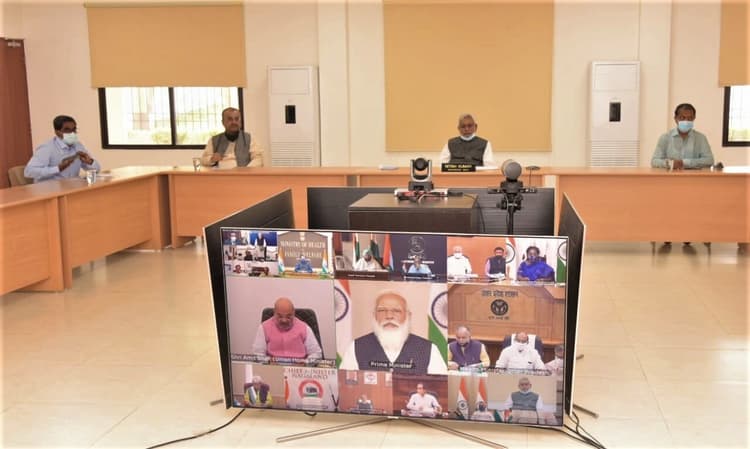 Corona Alert: पूरे देश में कोरोना फेज-2 (Corona Phase 2) की तेजी से बढ़ती हुई स्थिति को देखते हुए प्रधानमंत्री नरेंद्र मोदी (PM Modi) बिहार के मुख्यमंत्री (Bihar CM) नीतीश कुमार (Nitish Kumar) समेत अन्य सभी सीएम से बात की. एक अणे मार्ग स्थित नेक संवाद सभाकक्ष में वीडियो कॉन्फ्रेंसिंग के माध्यम से मुख्यमंत्री भी इससे जुड़े.