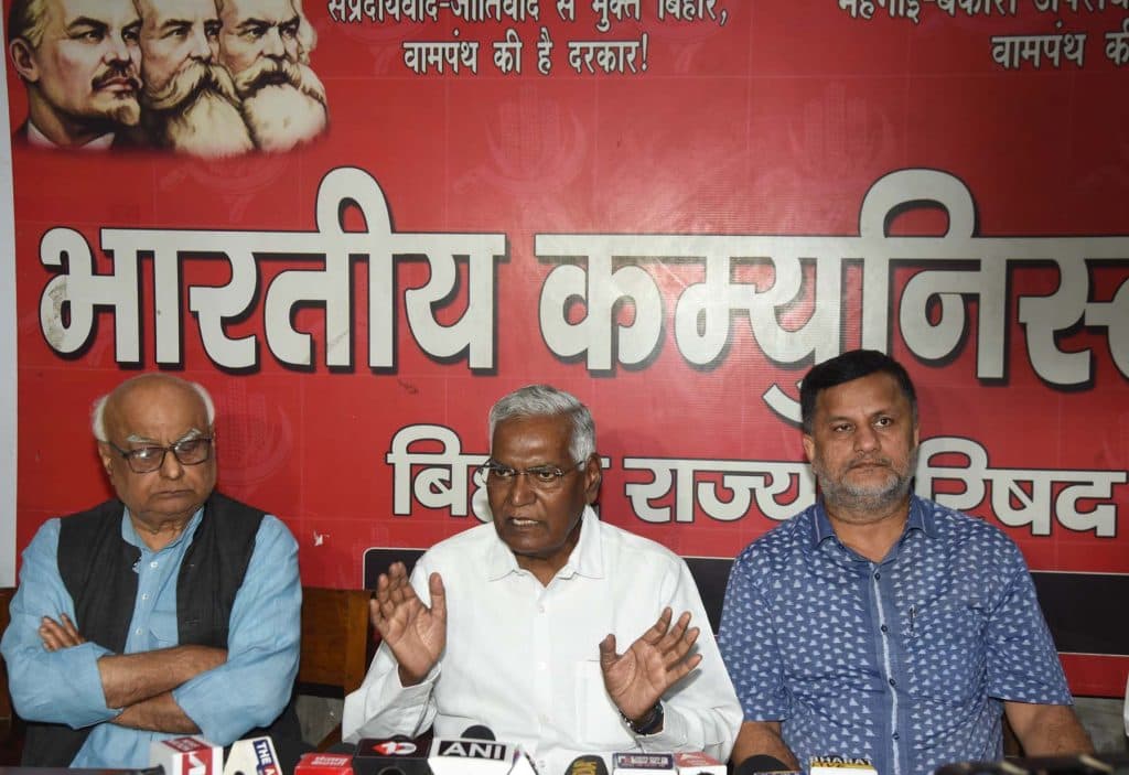 सीपीआई के राष्ट्रीय महासचिव डी राजा ने शुक्रवार को पटना में अवधेश कुमार राय को टिकट दिए जाने की घोषणा करते हुए कहा कि बिहार राज्य कार्यकारिणी ने सर्वसम्मति से यह फैसला लिया है. महागठबंधन में पार्टी को बेगुसराय सीट मिल गई है और अन्य सीटों पर सकारात्मक बातचीत चल रही है. डी राजा इस दौरान भाजपा पर भी हमलावर हुए. उन्होंने कहा कि लोकसभा चुनाव में सीपीआइ की पहली प्रथमिकता भाजपा को सत्ता से हटाना और संसद में भाकपा की ताकत को मजबूत करना है. हमने नारा दिया है, भाजपा हटाओ देश बचाओ – लोकतंत्र-संविधान बचाओ देश बचाओ. बिहार की सभी 40 सीटों भाजपा गठबंधन को हराने के लिए महागठबंधन एकजुट है.