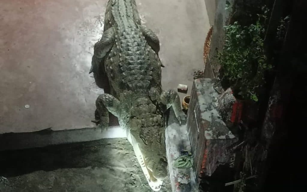 घर के आंगन में आराम फरमा रहा था मगरमच्छ