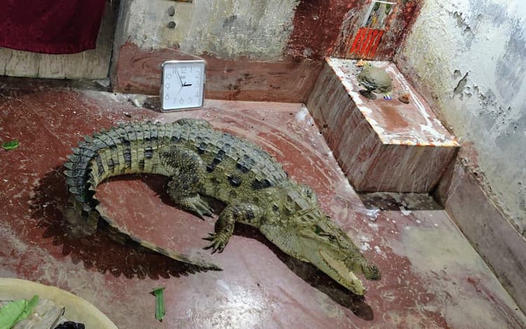 घर के आंगन में आराम फरमा रहा था मगरमच्छ
