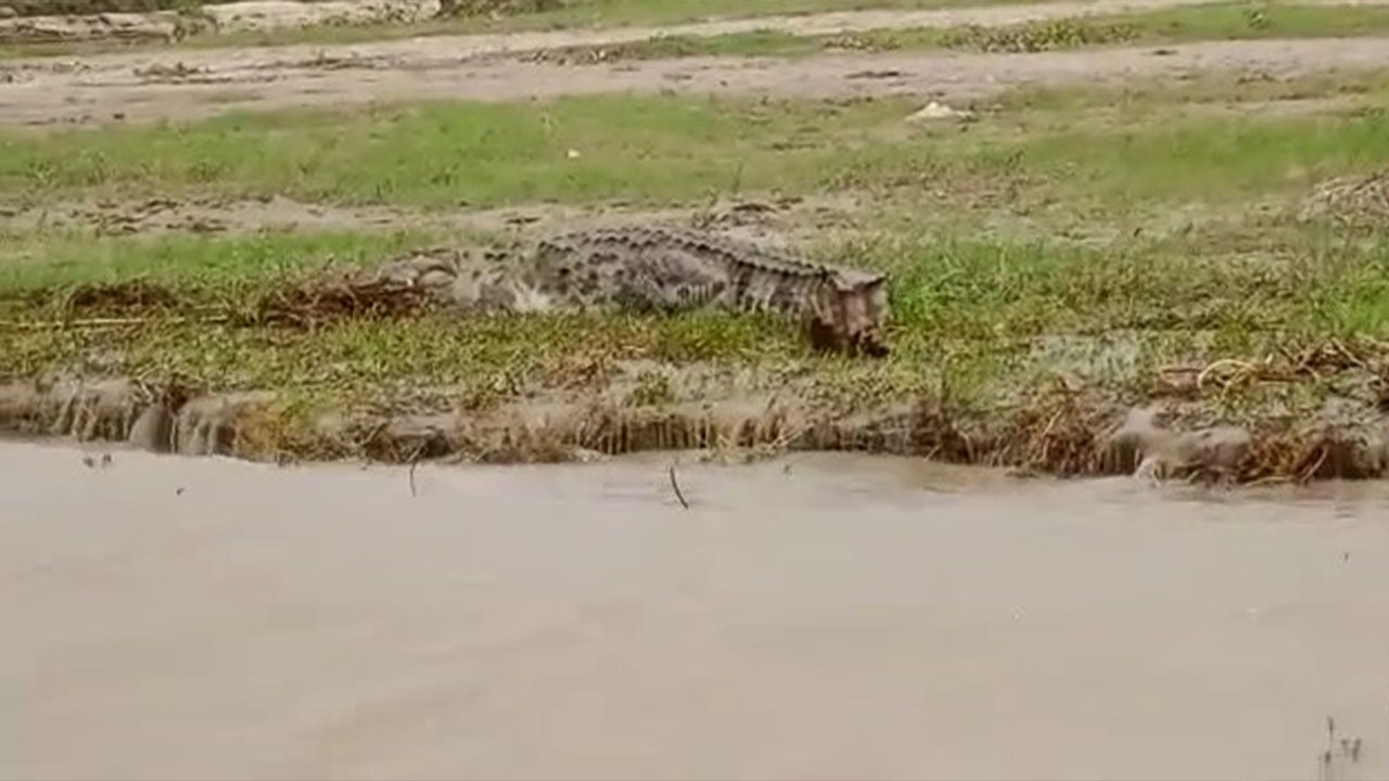 मगरमच्छ देखने के बाद ग्रामीणों ने शोर मचाना शुरू कर दिया, जिसकी खबर पूरे इलाके में आग की तरह फैल गई, लोग नदी किनारे मगरमच्छ को देखने के लिए जुटने लगे, बताया जा रहा है कि बारिश का मौसम है और नदियां भी उफान पर है. अनुमान लगाया जा रहा है कि बाढ़ के पानी के साथ बह कर ये मगरमच्छ चला आया है. मगरमच्छ कभी पानी मे तैरता तो कभी झड़ी की तरफ चला है.