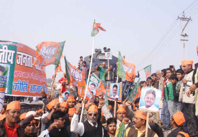 भाजयुमो के कार्यकर्ताओं ने हाथ में भाजपा का झंडा, बैनर लिए एवं कीर्ति आजाद के पोस्टर को लहराते हुए दरभंगा स्टेशन पर पहुंचे. सैकड़ों की संख्या में सांसद समर्थकों ने पहले सवारी गाड़ी को रोक दिया. इसके बाद जयनगर से नयी दिल्ली जाने वाली गरीब रथ को करीब दस मिनट तक रोककर नारेबाजी की. भाजयुमो कार्यकर्ता ट्रेन के इंजन पर सवार हो गये और पार्टी के कुछ नेताओं के विरोध में जमकर नारेबाजी करने लगे. कार्यकर्ता सांसद का पार्टी से निलंबन वापसलेने की मांग भी कर रहे थे. काफी मशक्कत के बाद आरपीएफ, जीआरपी एवं स्थानीय थाना की पुलिस ने समर्थकों से समझा बुझाकर ट्रैक पर से हटाकर परिचालन को शुरु कराया जा सका.