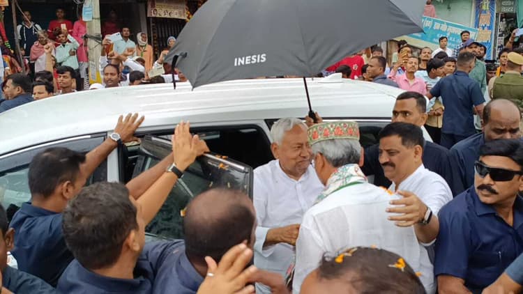 बेनीपुर, कुशेश्वरस्थान व दरभंगा ग्रामीण विस के एनडीए उम्मीदवार के पक्ष में की मतदान की अपील जदयू के राष्ट्रीय कार्यकारी अध्यक्ष संजय झा भी थे मौजूद बेनीपुर/कुशेश्वरस्थान/मनीगाछी. चक्रवाती तूफान मोंथा के कारण दो दिनों से विकराल हुए मौसम ने चुनावी सभा में अड़ंगा डाल दिया. इसे देखते हुए मुख्यमंत्री नीतीश कुमार ने तीन विधानसभा क्षेत्रों में शुक्रवार को रोड शो कर राजग समर्थित जदयू उम्मीदवारों के लिए वोटरों से मतदान की अपील की. विपरीत मौसम के बावजूद सीएम के कार्यक्रम को लेकर लोगों में उत्साह नजर आ रहा था. बड़ी संख्या में लोग निर्धारित आयोजनस्थल पर जमे रहे. अचानक कार्यक्रम के स्वरूप में हुए फेरबदल के कारण प्रशासन को इस ठंड हुए मौसम में भी पसीना बहाना पड़ा. मुख्यमंत्री के साथ जदयू के राष्ट्रीय कार्यकारी अध्यक्ष सह राज्य सभा सांसद संजय कुमार झा भी मौजूद थे. बेनीपुर में रोड शो के तहत मुख्यमंत्री का काफिला लगभग 2.45 बजे पहुंचा. मुख्यमंत्री की झलक पाने के लिए लोगों की भीड़ सड़क के दोनों किनारे जमी थी. मुख्यमंत्री बूंदाबांदी के बीच कुछ क्षण के लिए अपनी गाड़ी से नीचे उतरे. एनडीए प्रत्याशी डॉ विनय कुमार चौधरी को पाग-चादर पहनते हुए लोगों का अभिवादन किया. चौधरी को विजय श्री दिलाने की अपील की. इस दौरान सुरक्षा की पुख्ता व्यवस्था थी. मुख्यमंत्री के रोड शो को लेकर बेनीपुर मुख्य सड़क से जुड़नेवाले सभी सम्पर्क पथ को कुछ देर के लिए बंद कर दिया गया था. इस दौरान जदयू के कार्यकारी राष्ट्रीय अध्यक्ष संजय कुमार झा, सांसद गोपालजी ठाकुर सहित एनडीए के स्थानीय कार्यकर्ता मौजूद थे. वहीं मनीगाछी प्रखंड क्षेत्र के लुल्हवा चौक से ब्रह्मपुर सकरी तक मुख्यमंत्री नीतीश कुमार का रोड शो लगभग 3.30 बजे निकला. यह नेहरा, राघोपुर, दहौरा, ब्रह्मपुर, सकरी तक गया. इस दौरान गाड़ियों का काफिला साथ चलता रहा. इस क्रम में मुख्यमंत्री ने सड़क किनारे खड़े लोगो का अभिवादन हाथ हिलाकर स्वीकार किया. बारिश के बावजूद हजारों की संख्या लोग मौजूद थे. सीएम के काफिले के साथ जदयू के राष्ट्रीय कार्यकारी अध्यक्ष संजय कुमार झा, दरभंगा ग्रामीण विधान सभा के जदयू उम्मीदवार राजेश कुमार मंडल उर्फ ईश्वर मंडल सहित एनडीए के नेता व कार्यकर्ता मौजूद थे. सकरी के बाद सीएम का काफिला मधुबनी के लिए निकल गया. इधर, कुशेश्वरस्थान (अजा) विधानसभा के बेर चौक पर सीएम ने रोड शो कर लोगों से जदयू प्रत्याशी के पक्ष में मतदान करने की अपील की. मुख्यमंत्री कुमार व जदयू के कार्यकारी राष्ट्रीय अध्यक्ष सह राज्यसभा सांसद संजय कुमार झा समस्तीपुर के रोसड़ा से सड़क मार्ग से दोपहर 2.25 बजे बेर चौक पहुंचे. सीएम ने गाड़ी से बाहर निकल कर लोगों का अभिवादन किया. कुशेश्वरस्थान विधानसभा 