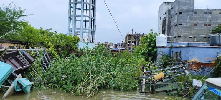 दरभंगा. कुछ घंटे की बारिश में सीएम साइंस कॉलेज परिसर फिर जलमग्न हो गया. कालेज में गुरुवार से सीआइए की परीक्षा शुरू हुई है. इसमें शामिल होने वाले परीक्षार्थियों को भारी कठिनाइयों का सामना करना पड़ा. खासकर छात्राओं एवं महिला प्राध्यापिका व कर्मचारी परेशान रहे. परिसर में घुटना भर पानी जमा हो गया है. इससे कालेज प्रशासन की चिंता बढ़ गयी है. विभिन्न कार्यालयों में पानी घुस गया है. प्रधानाचार्य प्रो. दिलीप कुमार चौधरी ने बताया कि परिसर में लगातार जलजमाव से निदान का अनुरोध नगर निगम एवं जिला प्रशासन से करने के बाद भी स्थिति जस की तस है. कहा कि कालेज परिसर के चारों ओर के नाला को अतिक्रमित कर लिए जाने से हल्की बारिश में भी काॅलेज में जलजमाव हो जाता है.