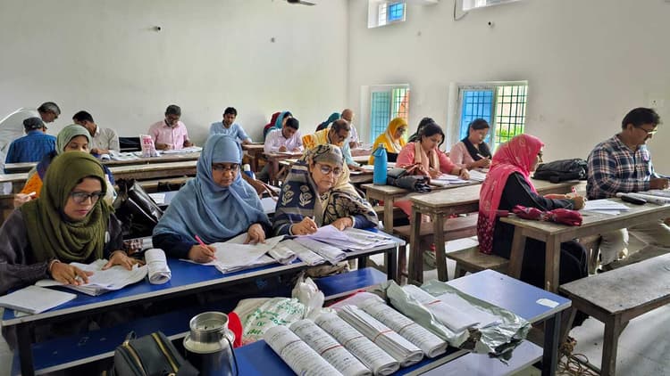 प्रारंभिक विद्यालयों में अध्यनरत तीसरी से आठवीं कक्षा के छात्र-छात्राओं का अर्धवार्षिक मूल्यांकन की कॉपी जांच काम्प्लैक्स रिसोर्स सेंटर पर शुक्रवार को शुरू हुआ. विभिन्न रिसोर्ट सेंटर पर परीक्षक मूल्यांकन केंद्र निदेशक के देख रेख में मूल्यांकन कार्य शुरू किया. रिसोर्स सेंटर पर संबंधित विद्यालयों के शिक्षकों ने कॉपी जांच शुरू की. यह पहला मौका है, जब अर्धवार्षिक मूल्यांकन की कॉपी जांच सेंट्रलाइज की जा रही है. इसको लेकर विभिन्न केंद्र पर सुबह 10 बजे से चहल पहल देखा गया. हालांकि इस तरह की जांच प्रक्रिया से प्रारंभिक शिक्षकों को अब तक पाला नहीं पड़ा था. यह पहला मौका था जब इस तरह की जांच में वे शामिल हुए. पहली बार एससीइआरटी प्रारंभिक विद्यालयों में अर्धवार्षिक मूल्यांकन करा रहा है. कॉपी जांच के लिए दिशा निर्देश जारी किया है तथा इसका कठोरता से अनुपालन सुनिश्चित करने के निर्देश दिए हैं. प्रखंड लेवल की कमेटी को इसकी सघन जांच के भी निर्देश दिए गए हैं. मालूम हो कि पहली एवं दूसरी कक्षा के छात्रों का मौखिक मूल्यांकन किया गया था तथा इसका परीक्षा परिणाम विद्यालय स्तर पर तैयार किया जाएगा. जबकि तीसरी से आठवीं कक्षा छात्र-छात्राओं के अर्धवार्षिक मूल्यांकन का परिणाम जांच केंद्र से परिणाम प्राप्त होने के बाद संबंधित विद्यालय पर मूल्यांकन पंजी में अंकित किया जाएगा तथा आगामी 5 अक्टूबर को शिक्षक अभिभावक संगोष्ठी में इसकी शेयरिंग होगी. बताते चलें इस परीक्षा में सरकारी प्रारंभिक विद्यालयों में अध्यनरत 6 लाख बच्चों के शामिल होने की संभावना है. विभाग ने पहले ही स्पष्ट कर दिया है कि इस परिणाम के आधार पर शिक्षकों की सेवा पुस्तिका में अंकित किया जाएगा.डिस्क्लेमर: यह प्रभात खबर समाचार पत्र की ऑटोमेटेड न्यूज फीड है. इसे प्रभात खबर डॉट कॉम की टीम ने संपादित नहीं किया है