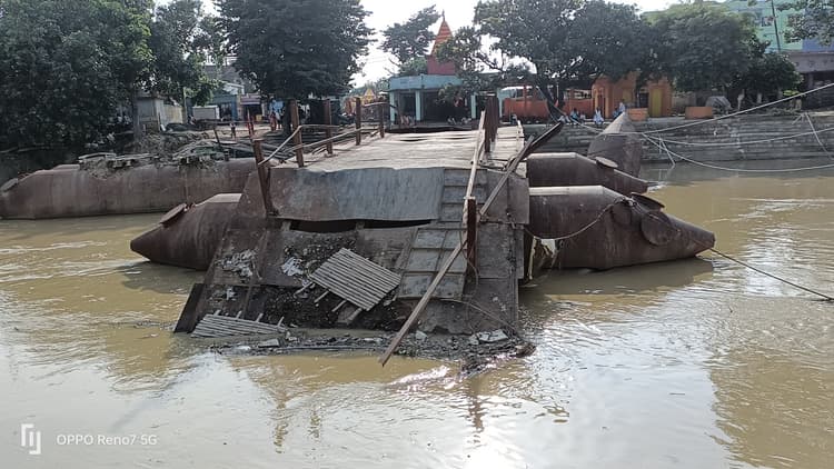 दरभंगा. बागमती नदी फिर उफना गयी है. पिछले दो दिनों में जलस्तर में करीब पांच फीट वृद्धि हो गयी है. पानी बढ़ने से महाराजी पुल निर्माण के दौरान आवागमन के लिए बनाया गया पीपा पुल भी ध्वस्त हो गया है. वैकल्पिक व्यवस्था के तहत पीपा पुल को जोड़ने के लिये लगाया गया चचरी का कनेक्शन प्वाइंट पानी में डूब गया है. इससे बागमती नदी के पश्चिमी भाग के अलावा ग्रामीण क्षेत्र का शहरी क्षेत्र से सहज संपर्क कट गया है. स्कूली बच्चों, कार्यालयों में काम करने वाले, दिहाड़ी मजदूर से लेकर बाजार आने-जाने वालों का आवागमन ठप हो गया है. इससे करीब 30 हजार की आबादी प्रभावित हो गयी है. पुराने महाराजी पुल के जर्जर होने के कारण इसके स्थान पर नये पुल का निर्माण विभाग कर रहा है. निर्माण के दौरान आवागमन के लिए पीपा पुल बना दिया गया. जुलाई की शुरुआत में जलस्तर में वृद्धि के बाद पीपा पुल के बीच में ऊपर उठ जाने के कारण तत्काल आवागमन के लिए बांस का चचरी दोनों किनारे बना दिया गया. अब वह भी ध्वस्त हो गया है. इससे लोगों की परेशानी के साथ चिंता बढ़ गयी है. वहीं, नदी के जलस्तर में तेज वृद्धि ने लोगों की टेंशन बढ़ा दिया है. बागमती नदी के पश्चिमी भाग अवस्थित वार्ड आठ, नौ व 23 के अलावा ग्रामीण क्षेत्र के सिमरा, नेहालपुर, चतरिया, मब्बी आदि गांव के लोगों के लिए आवागमन में समस्या उत्पन्न हो गयी है. हालांकि वार्ड 23 व वार्ड नौ के कुछ भाग के लोगों के लिये इमली घाट पुल से आवागमन में सहूलियत जरूर है. बागमती नदी के पश्चिमी भाग आने-जाने के लिये लोगों को इमली घाट पुल से आवागमन करना पड़ रहा है. इस पुल से आवागमन में लोगों को अधिक दूरी तय करनी पड़ रही है. गौरतलब है कि पीपा पुल से केवल पैदल लोग आ-जा सकते थे. पूर्वी भाग से शवदाह के लिये सती स्थान जाने तथा वाहनों के परिचालन को लेकर पूर्व से इमलीघाट पुल पर ही लोग निर्भर हैं.