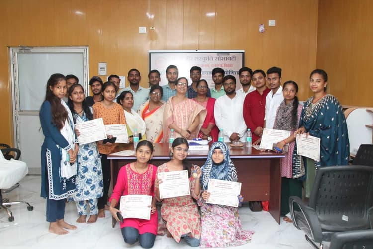 दरभंगा. मारवाड़ी काॅलेज के आर्ट्स एंड कल्चर सोसायटी की ओर से आयोजित गायन प्रतियोगिता में दिव्यांश श्री ने प्रथम स्थान प्राप्त की. प्रतियोगिता में 16 छात्र-छात्राओं ने भाग लिया. द्वितीय स्थान पर स्मृति कुमारी और तृतीय स्थान आयशा खातून ने हासिल की. निर्णायक मंडल में लनामिवि के पीजी संगीत एवं नाट्य विभागाध्यक्षा प्रो. पुष्पम नारायण और पीजी संस्कृत विभागाध्यक्ष डॉ घनश्याम महतो थे. संचालन सोसायटी के संयोजक डॉ विकास सिंह ने किया. डॉ सिंह ने इस प्रकार के सांस्कृतिक आयोजनों की आवश्यकता पर बल दिया. छात्रों को अपनी कलात्मक क्षमताओं को निखारने के लिए प्रोत्साहित किया. प्रो. पुष्पम नारायण ने कहा कि आज के समय में ऐसे संगीत की आवश्यकता है, जो सांस्कृतिक और राष्ट्रीय चेतना को जागृत करें. कहा कि संगीत में रोजगार की अपार संभावनाएं हैं. छात्रों को आत्मनिर्भर बनने के लिए प्रेरित होना चाहिए. पीजी संस्कृत विभागाध्यक्ष डॉ घनश्याम महतो ने कहा कि कला और संस्कृति दोनों ही जीवन के महत्वपूर्ण मापदंड हैं. अध्यक्षता प्रधानाचार्या डॉ कुमारी कविता ने की. कहा कि संगीत न केवल भावों को उत्पन्न करता है, अपितु यह मनोवैज्ञानिक ढंग से उपचार भी करता है. स्वागत डॉ अनुरुद्ध सिंह और धन्यवाद ज्ञापन आदित्य कुमार मिश्र ने किया. माैके पर डॉ सुनीता कुमारी, डॉ रवि कुमार राम, डॉ पूजा यादव, डॉ निशा कुमारी, डॉ प्रिया नंदन, डॉ अनीता सिन्हा सहित अश्मिता सुमन, सूरज कुमार, वसुंधरा, रवि शंकर, अमित और राजलक्ष्मी मौजूद थे.